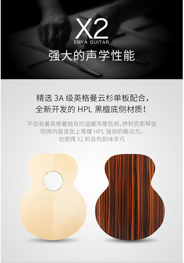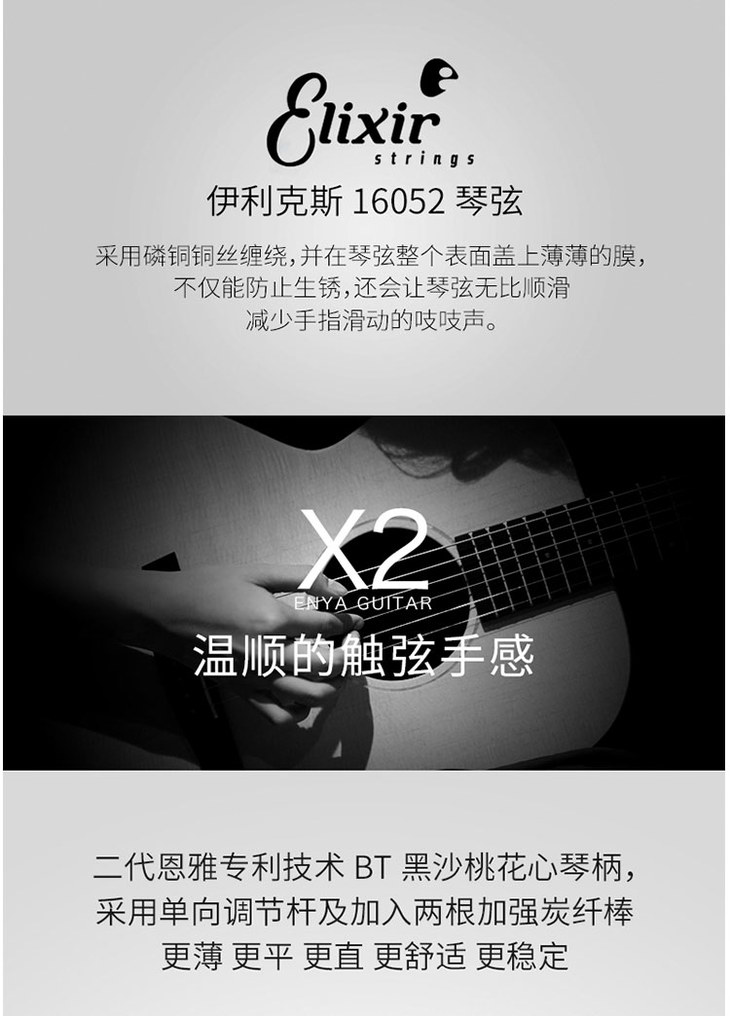 【恩雅吉他】恩雅X2 PRO云杉木单板民谣吉他36/41寸