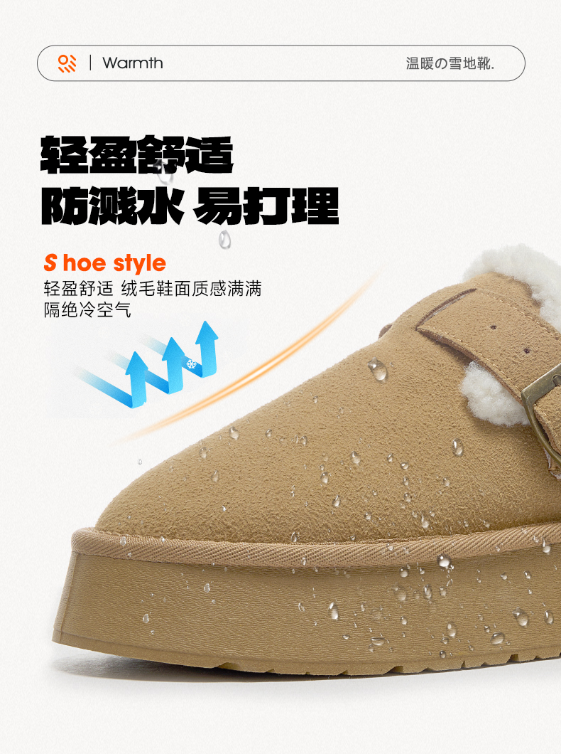 回力冬季雪地靴女2024新款勃肯鞋面包短靴子加绒保暖毛毛棉鞋女款