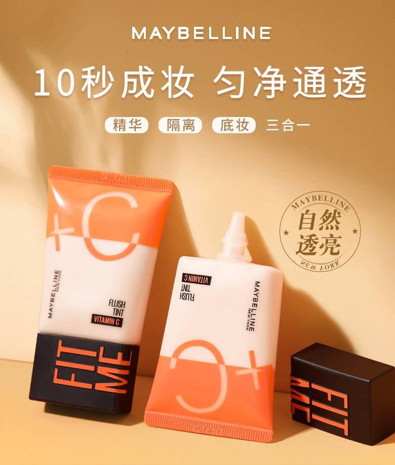 美宝莲早C管素颜霜CC霜 防晒隔离妆前乳3合一打底遮瑕提亮保湿懒人