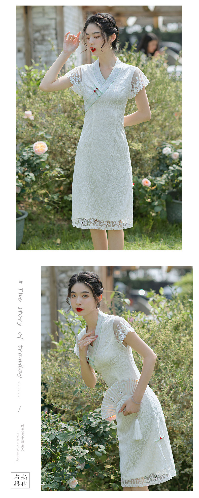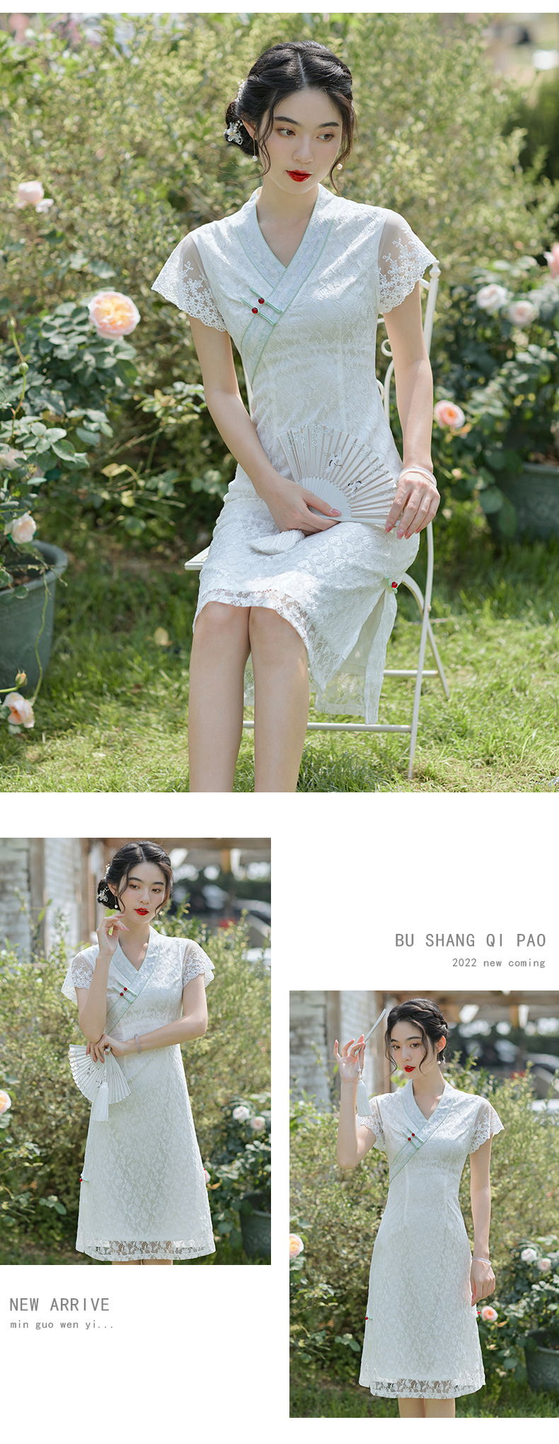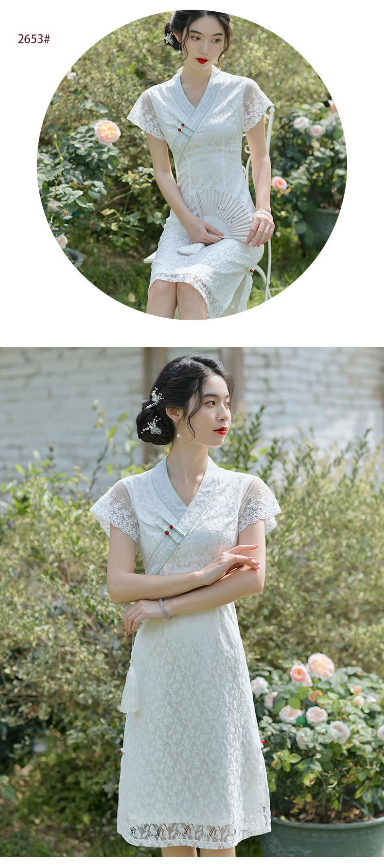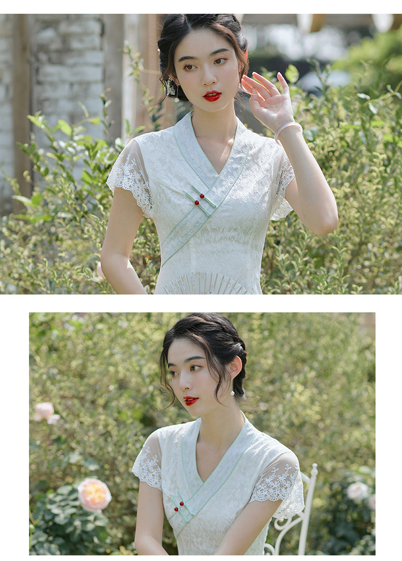 个性小众,优雅新款A版花瓣蕾丝短袖汉服风少女旗袍BS-2653