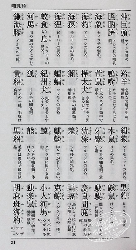 收录了约10000个日常生活中常见的难读词,口袋辞典的高级版。植物、动物、历史、艺术、生活、四字熟语等难读词按领域收录。卷末附有登载的难读语第一个汉字的总笔画数顺序的索引。通过洗练的设计,兼具作为物品的魅力,潇洒雅致的小辞典