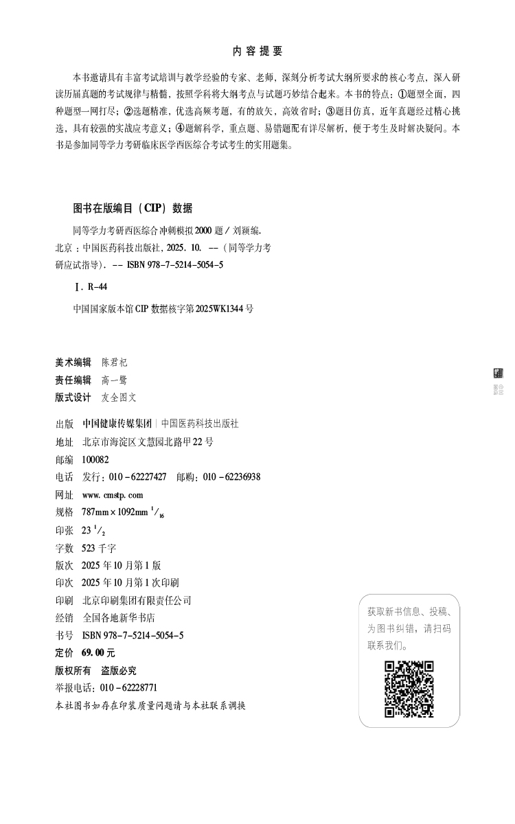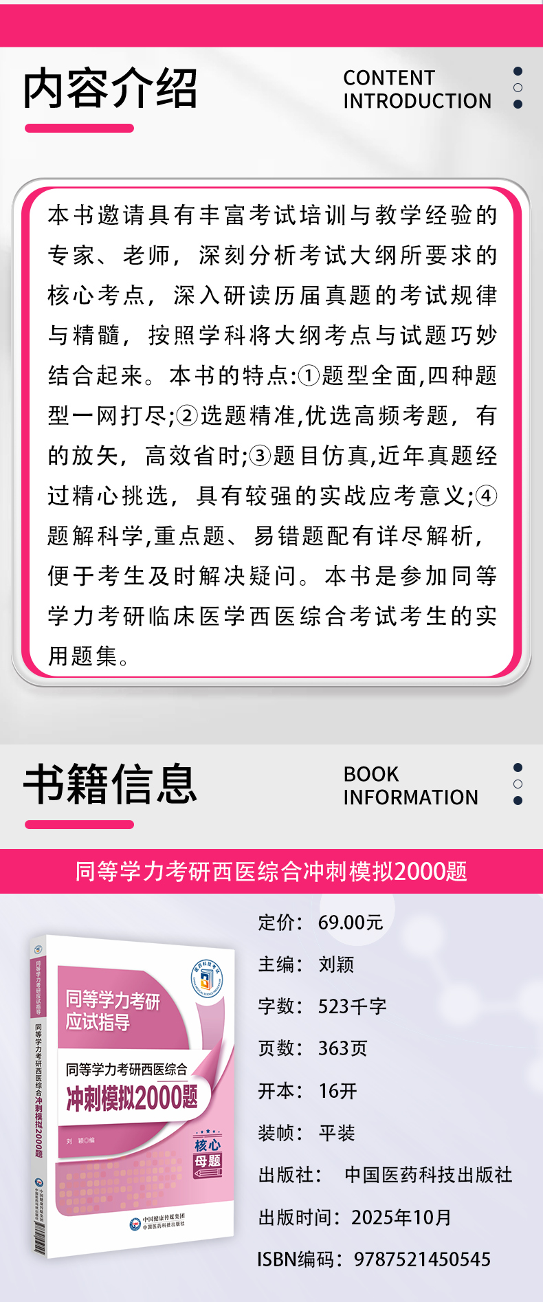 同等学力考研西医综合冲刺模拟2000题 同等学力考研应试指导 刘颖 主编 临床医学西医综合考试考生的实用题集 中国医药科技出版社