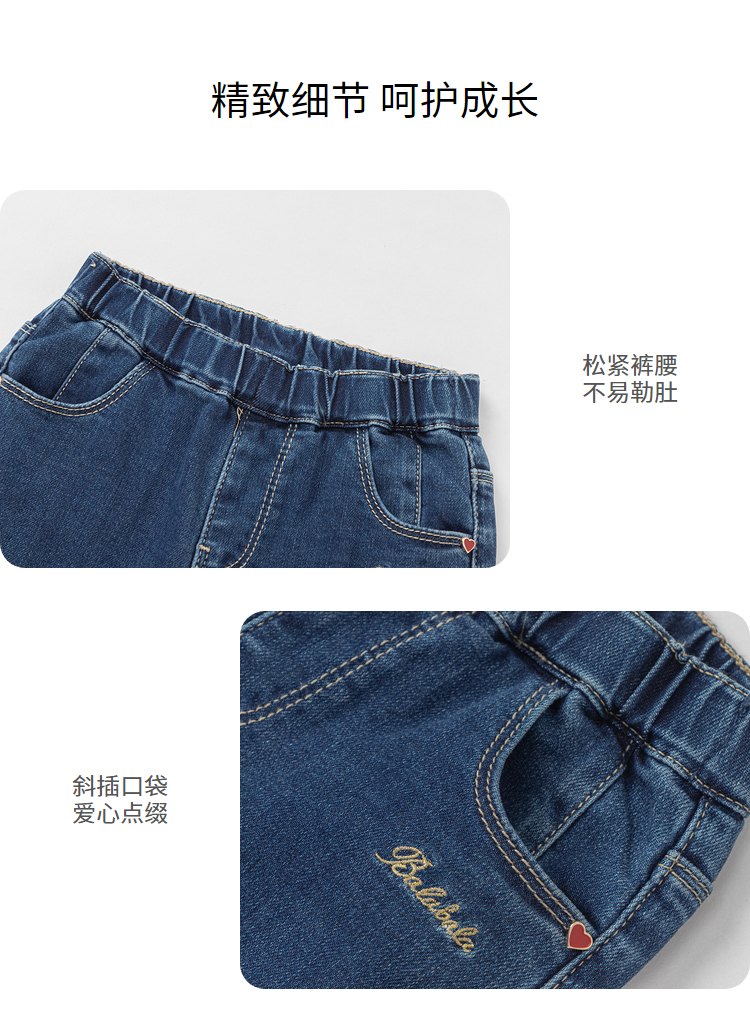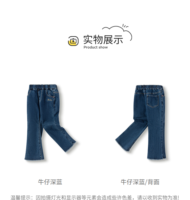 巴拉巴拉童装儿童长裤女童牛仔裤2024秋季新款毛边微喇裤时尚绣花
