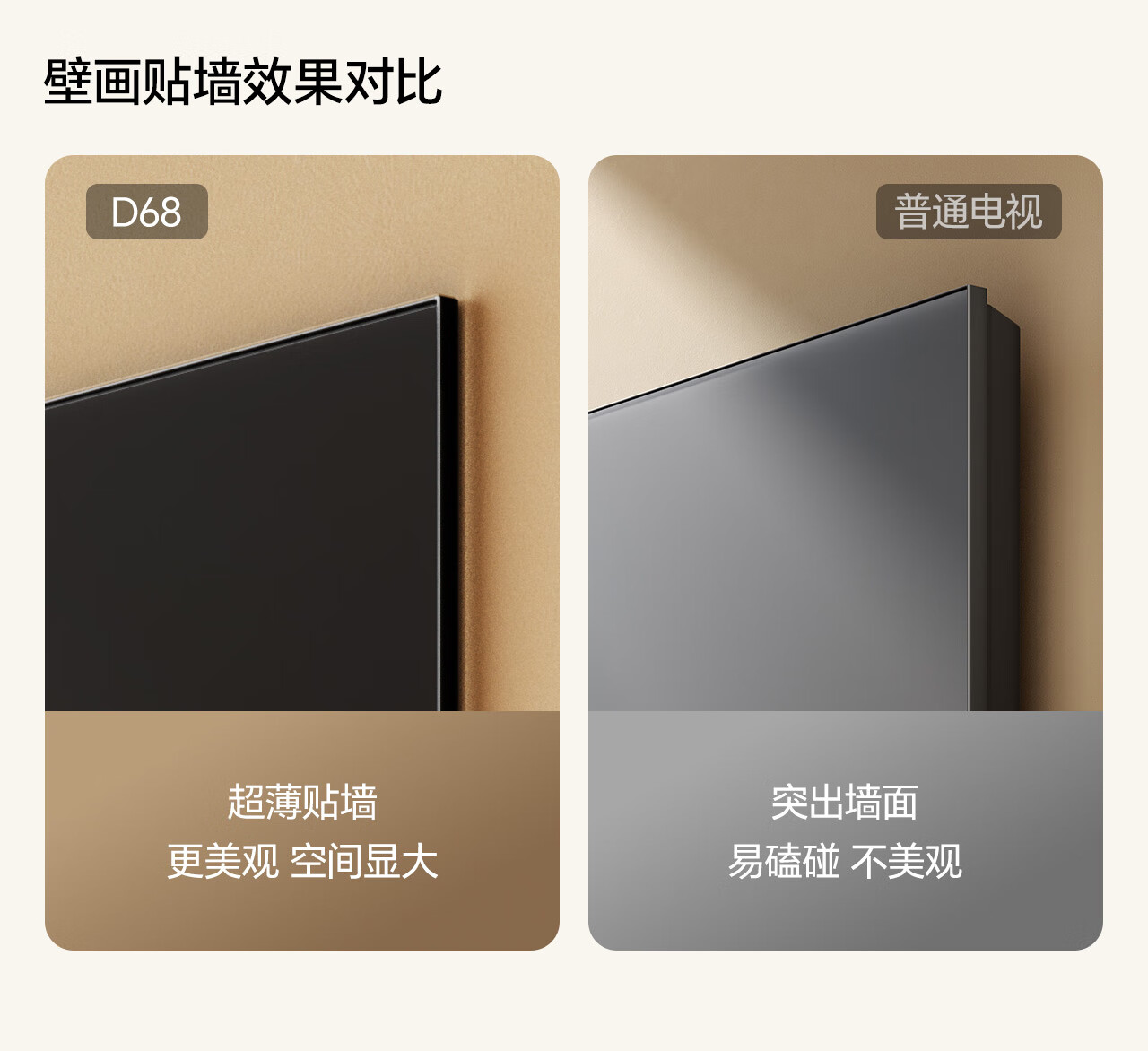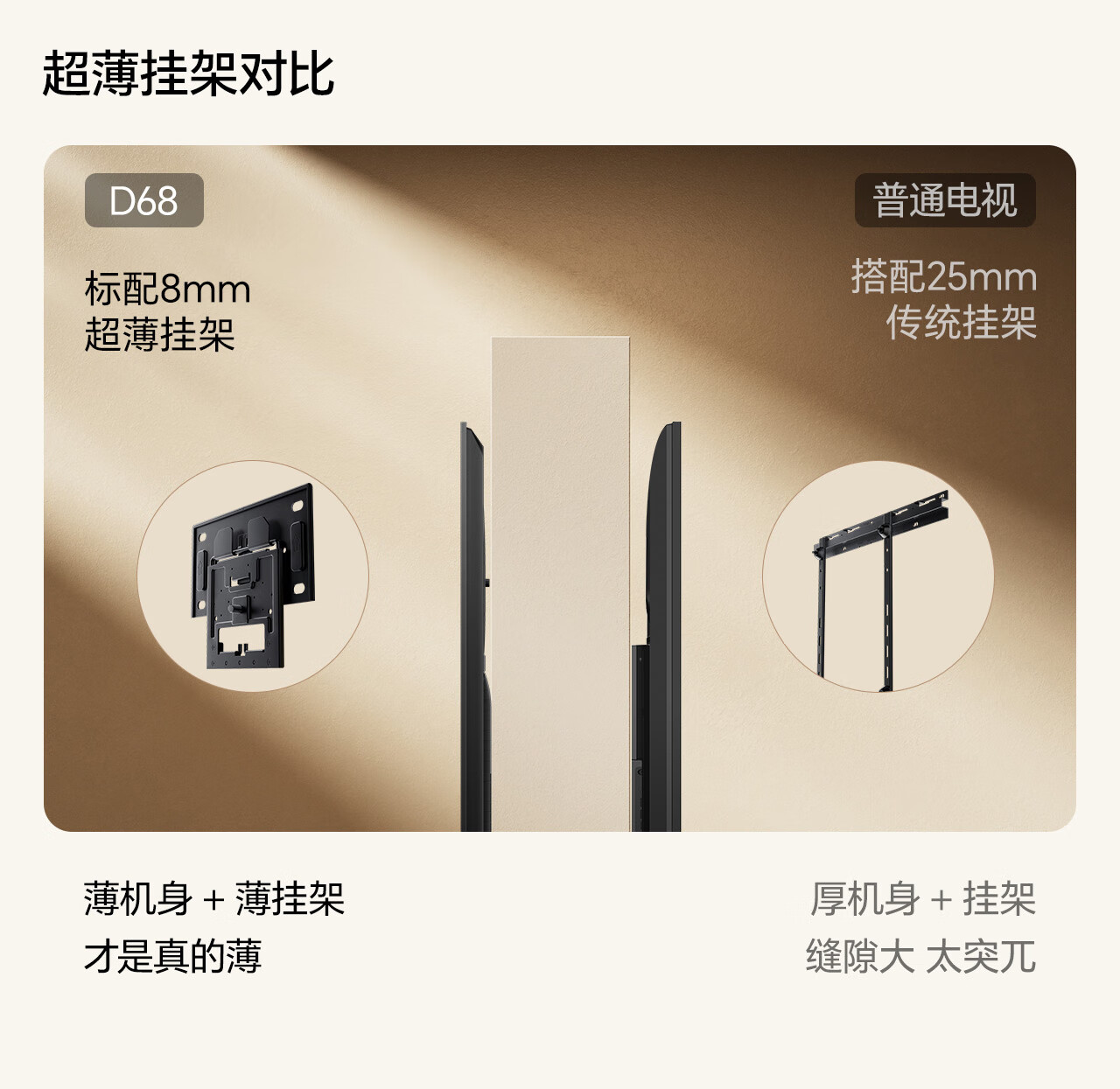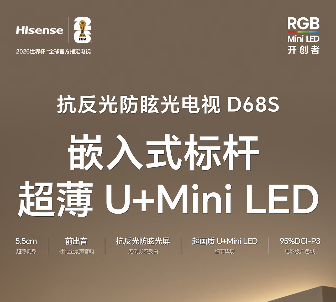 海信电视D68S 65英寸 超薄贴墙 前出音杜比全景声 抗反光防眩光 U+MiniLED 电影级广色域