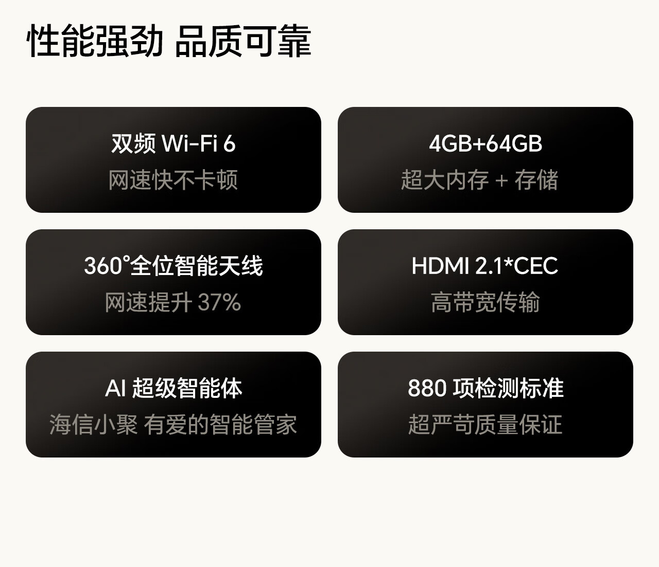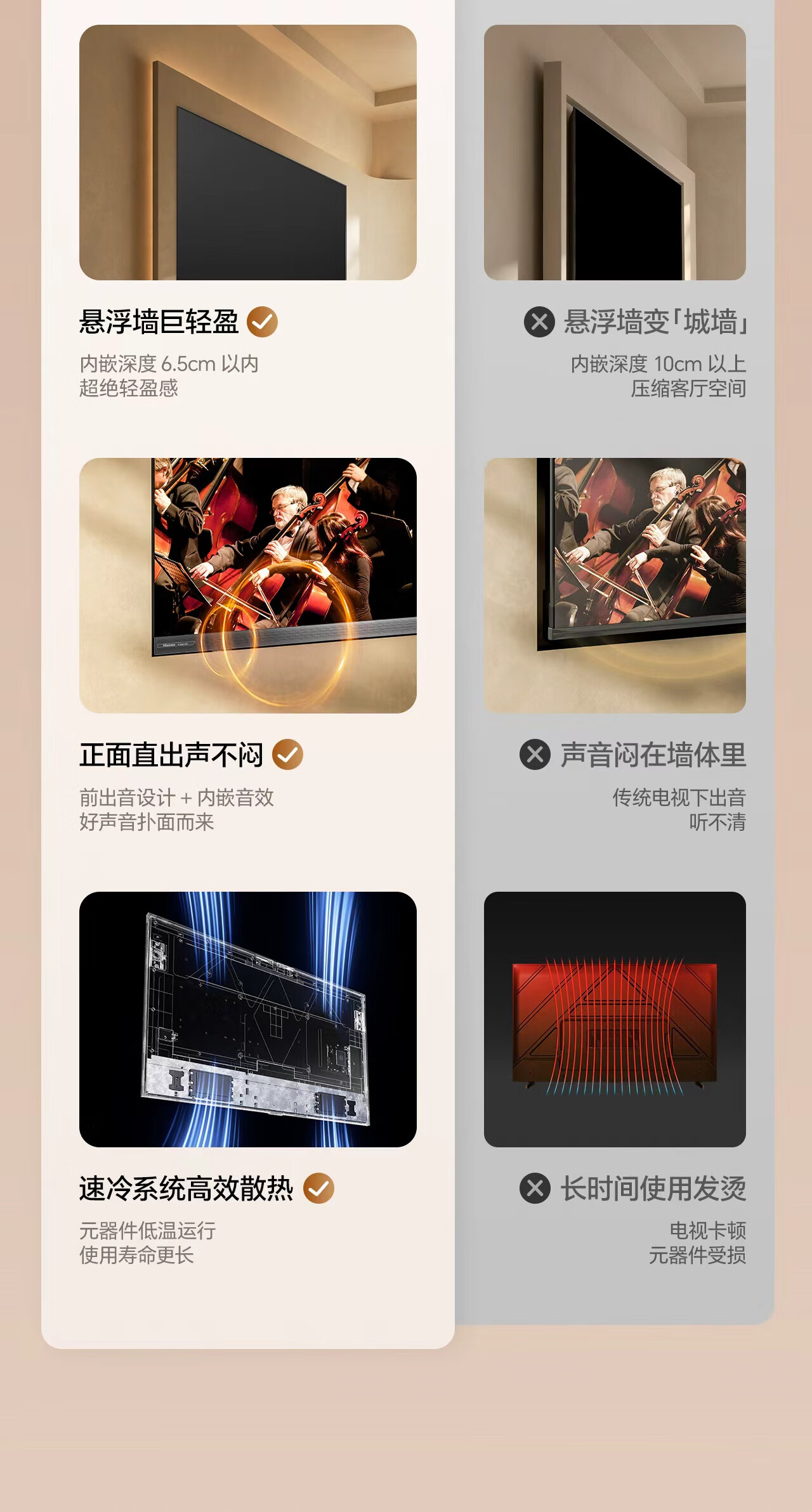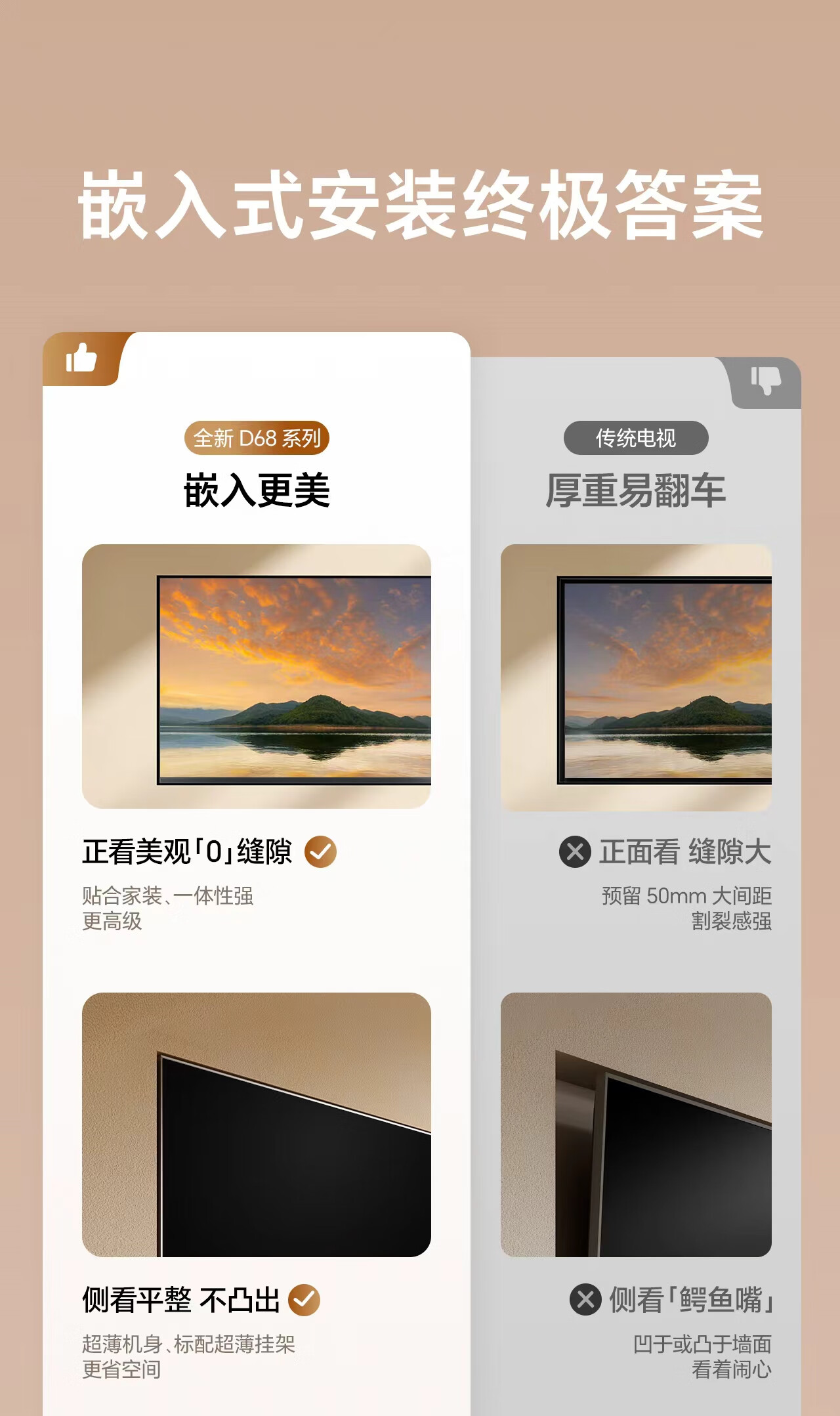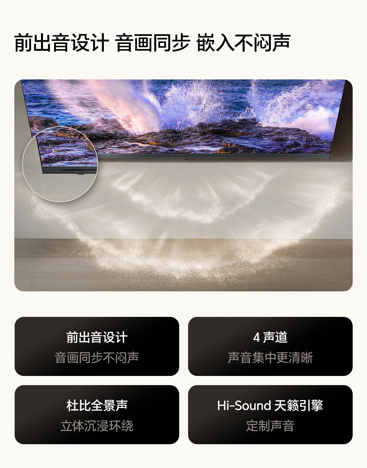 海信电视D68S 65英寸 超薄贴墙 前出音杜比全景声 抗反光防眩光 U+MiniLED 电影级广色域