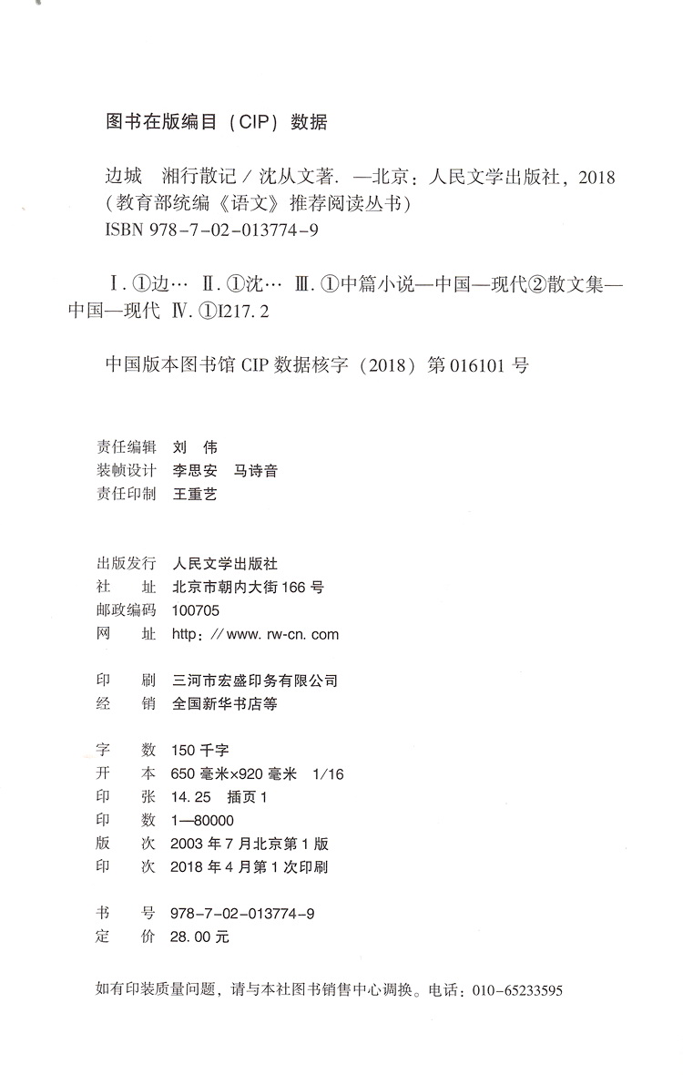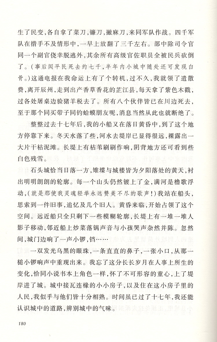 边城湘行散记 沈从文原著学生版无删减部编版统编语文初中生七八九年级789年级课外阅读物书目经典名著 人民文学出版社