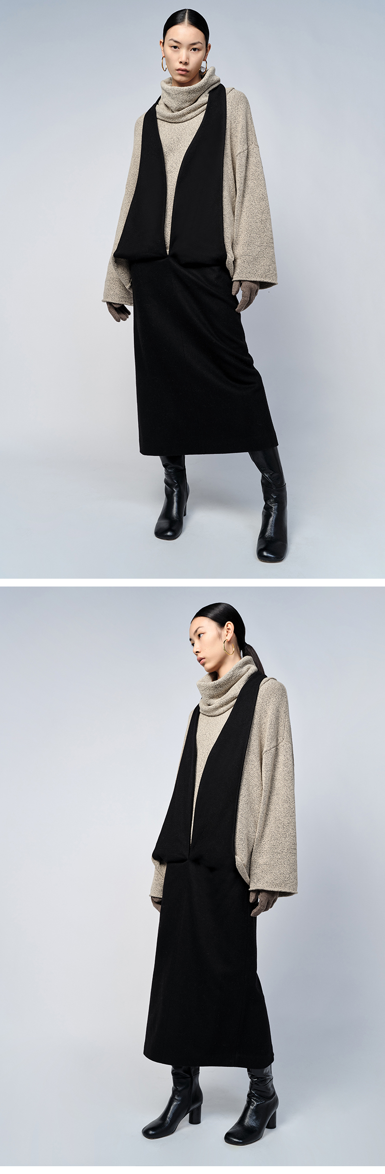 HIDEMI 美利奴羊毛简约设计感茧型套装 半高领毛衣/茧型半身裙