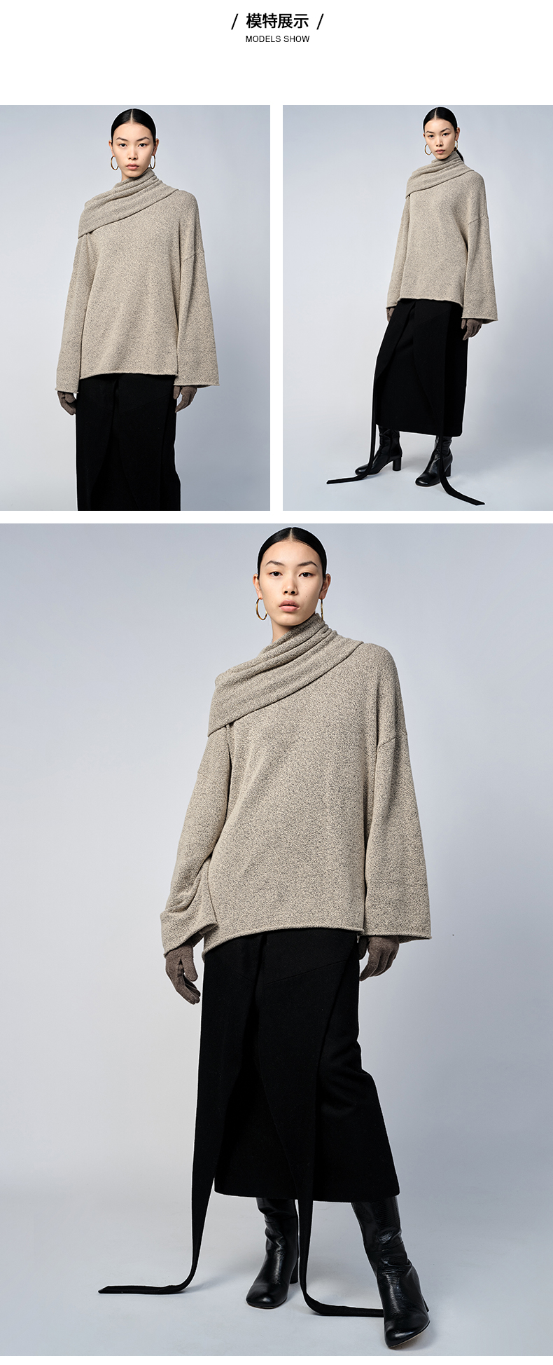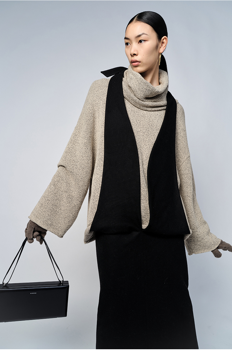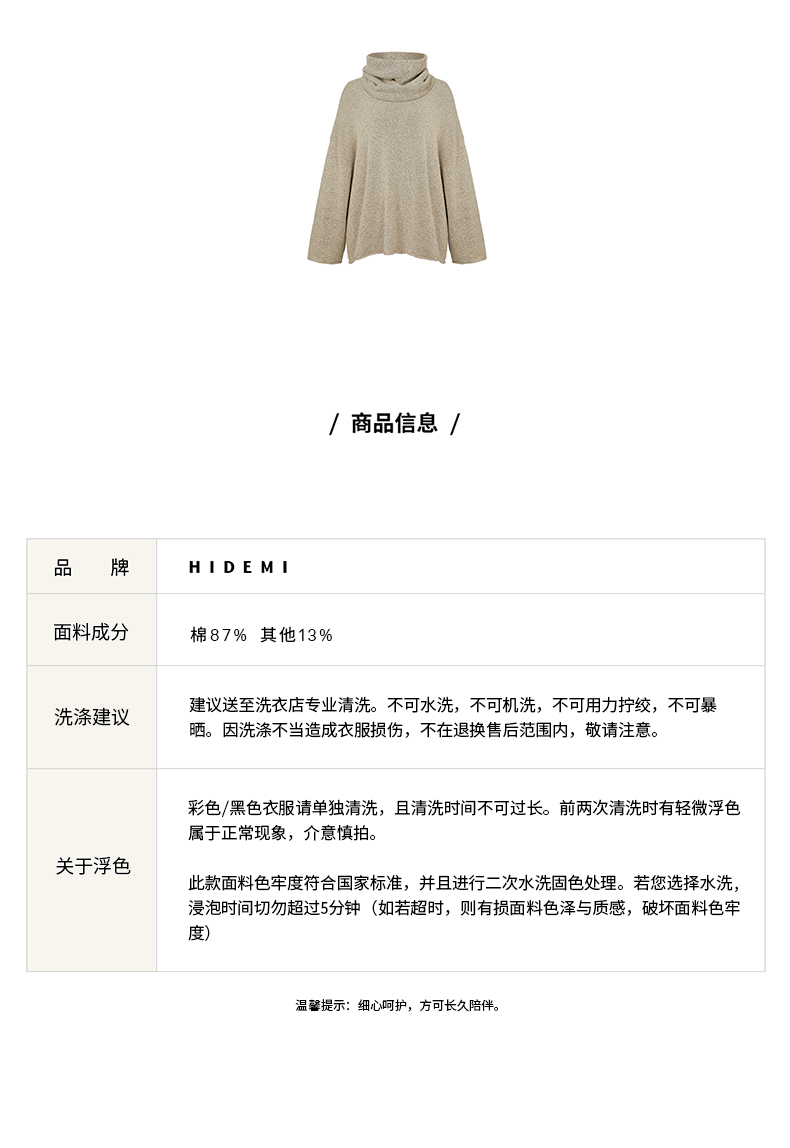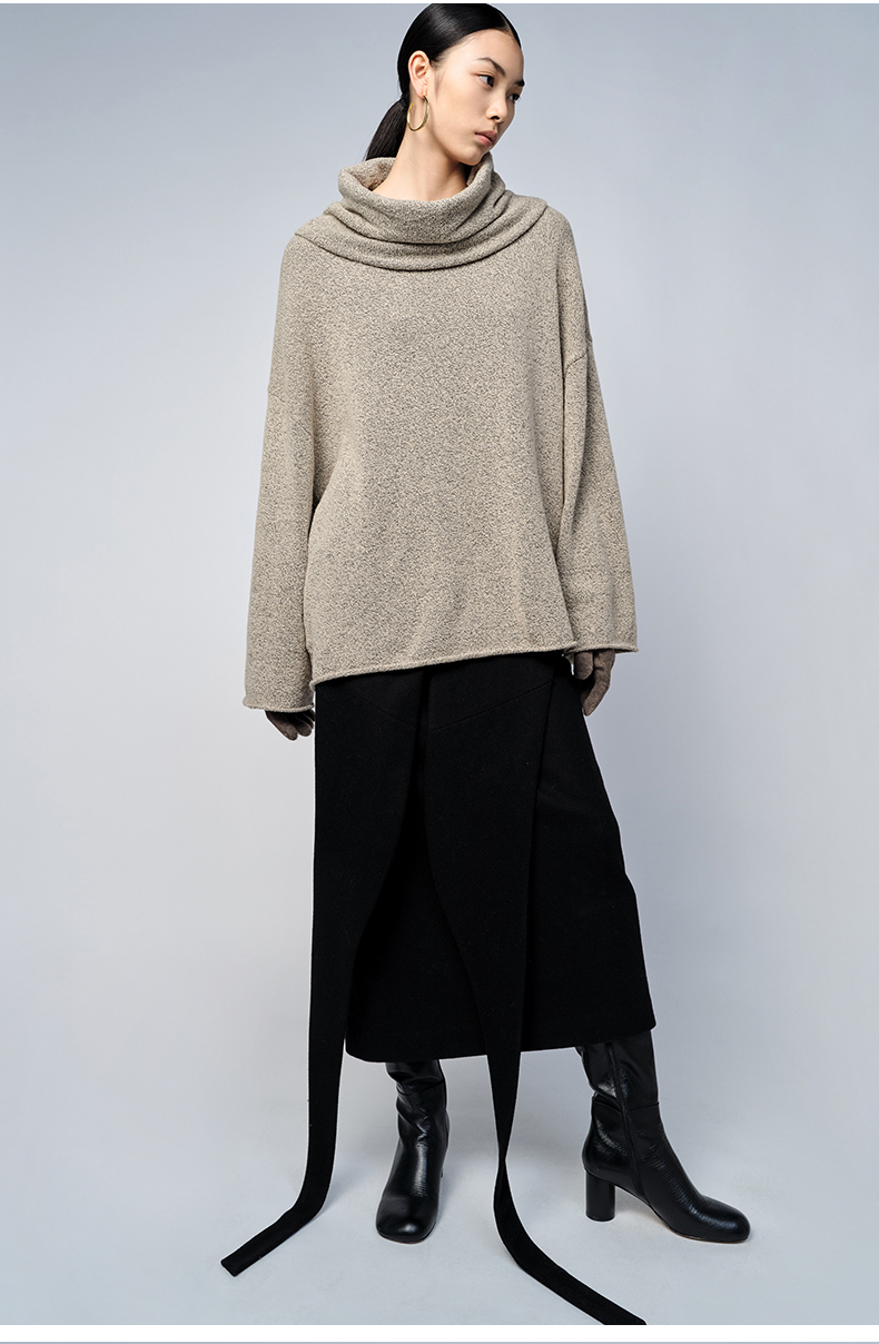 HIDEMI 卡其花纱分体围脖廓形毛衣