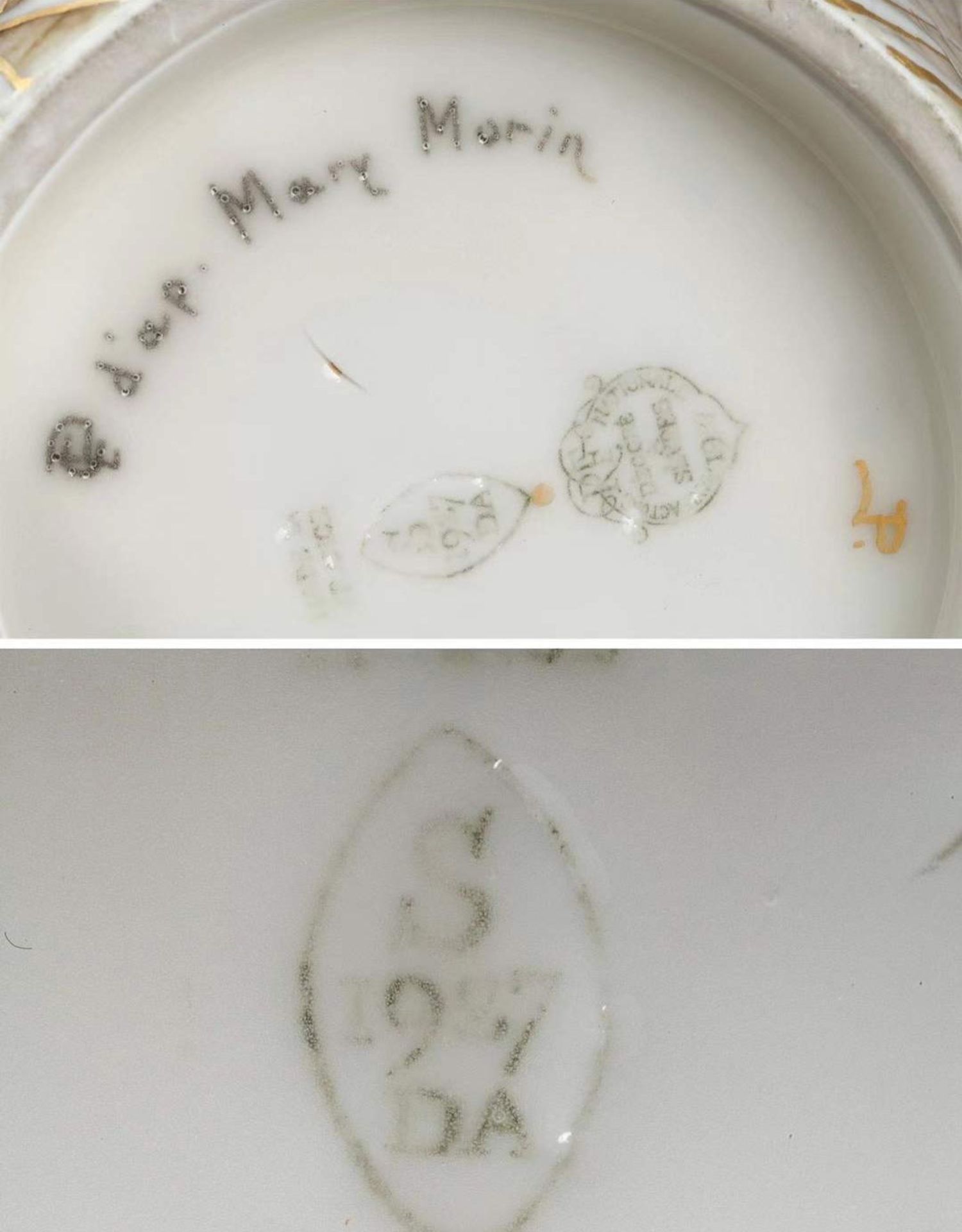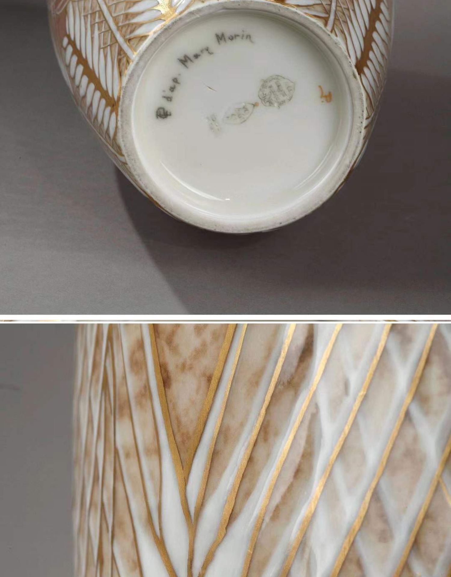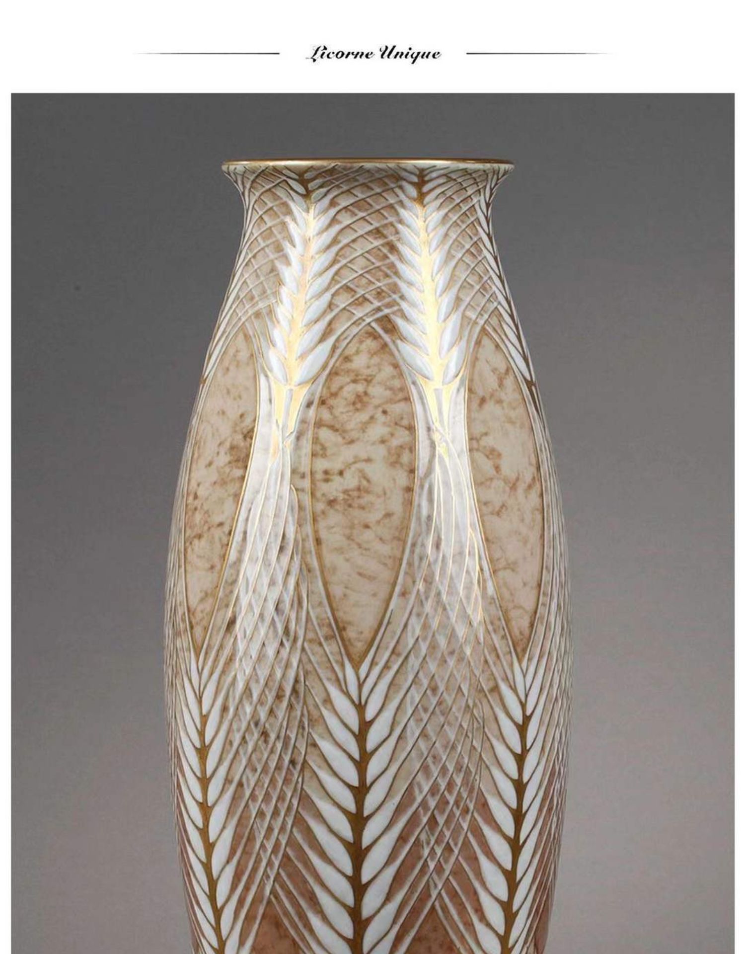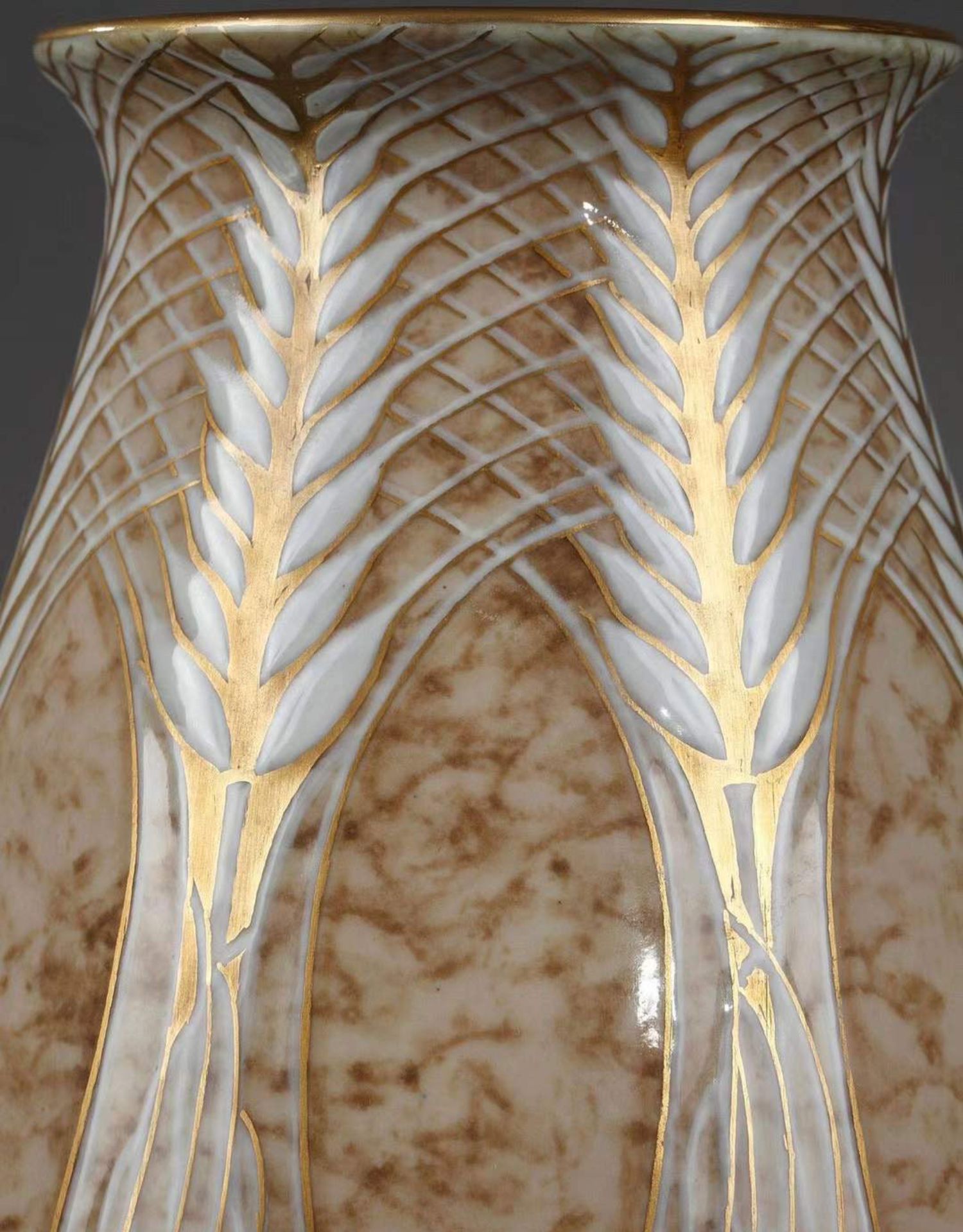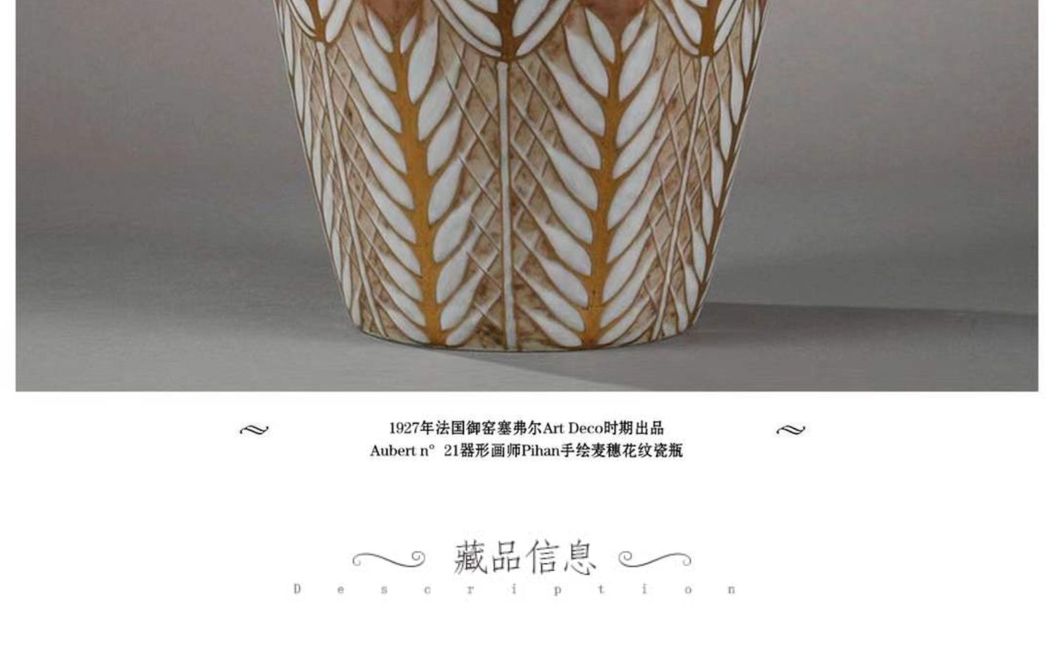 独角鹿西洋古董赛弗尔瓷器法国出品画师Pihan手绘麦穗花纹瓷瓶