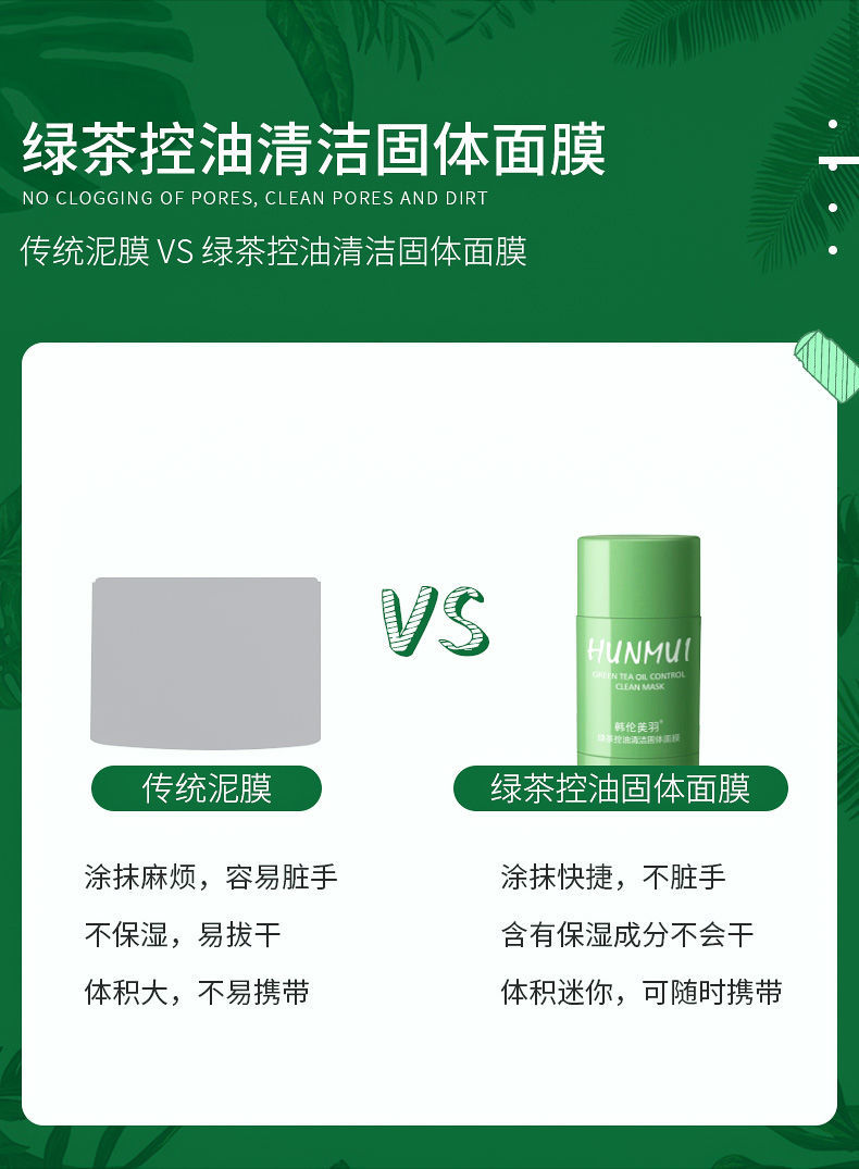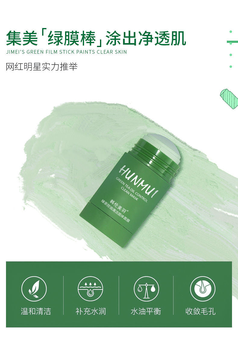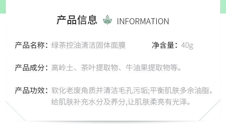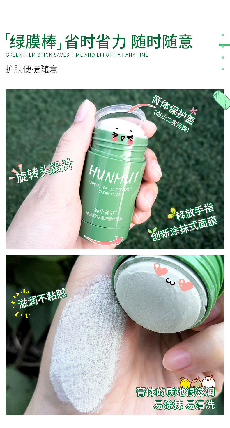 【网红同款】绿茶固体清洁面膜去黑头祛痘粉刺深层清洁涂抹式面膜