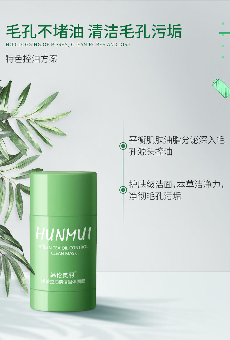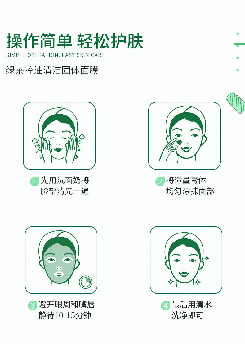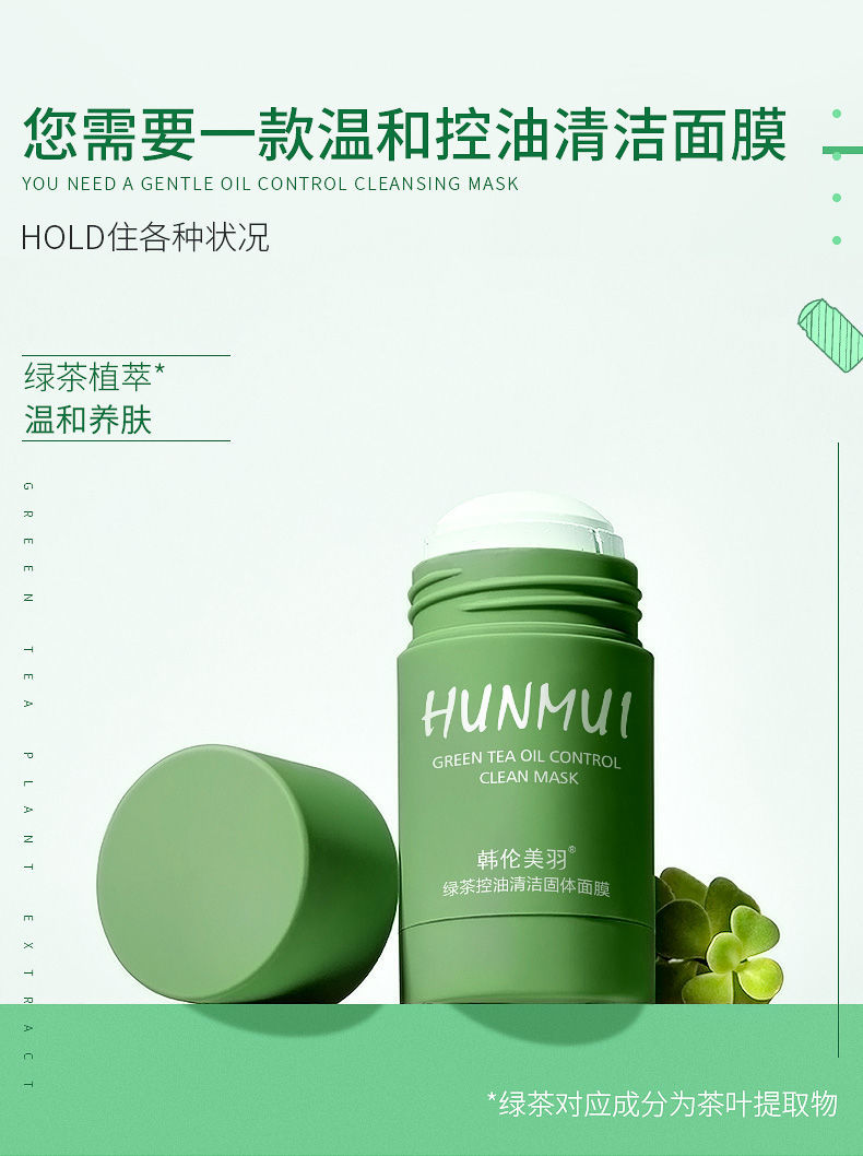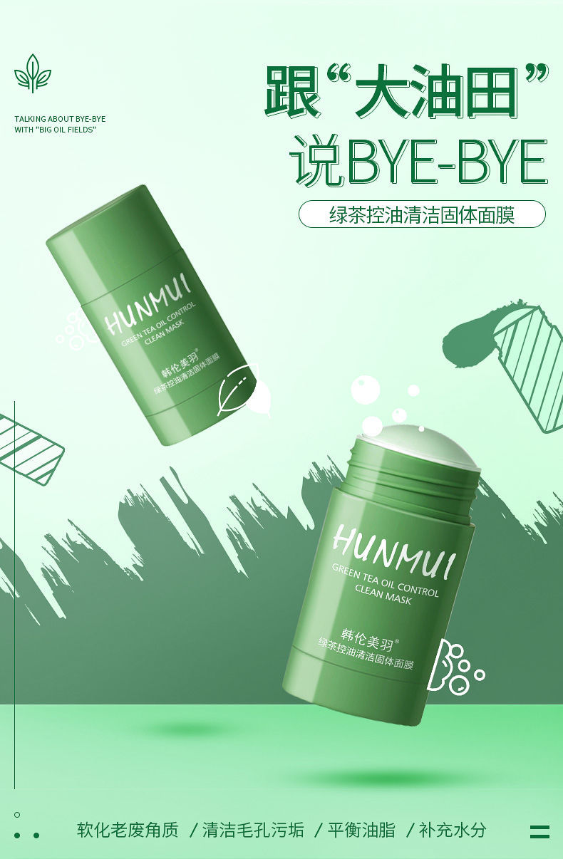 【网红同款】绿茶固体清洁面膜去黑头祛痘粉刺深层清洁涂抹式面膜