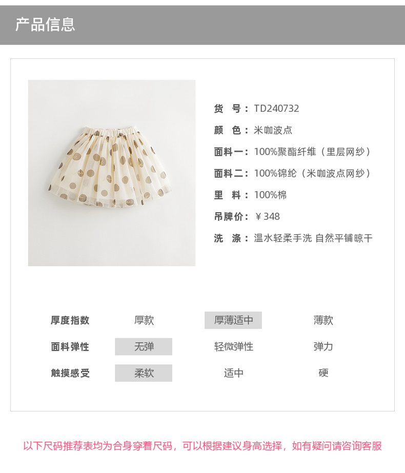 【马克珍妮芦芙】女童米咖波点轻盈网纱短裙半身裙夏装新款240732