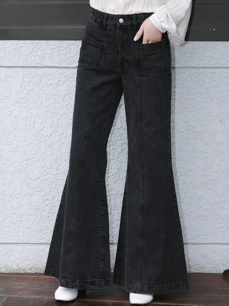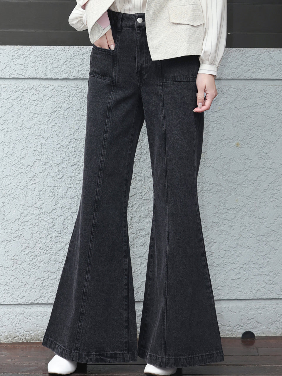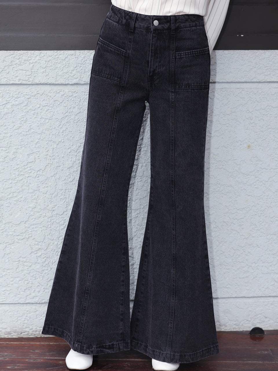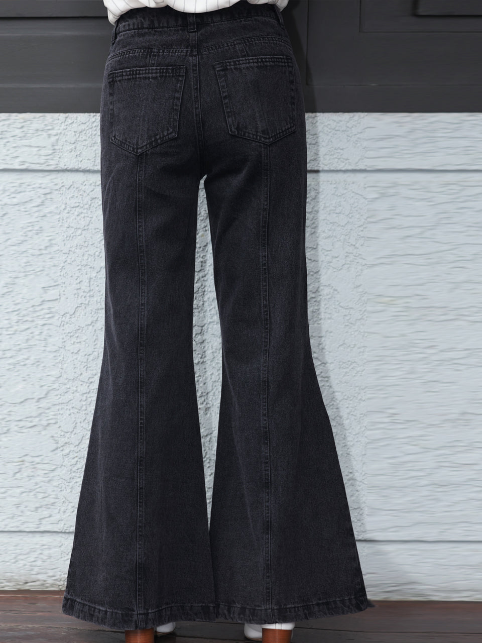 TYNVIE 水洗接缝喇叭牛仔裤 - 黑色