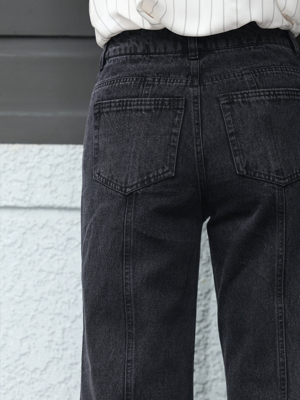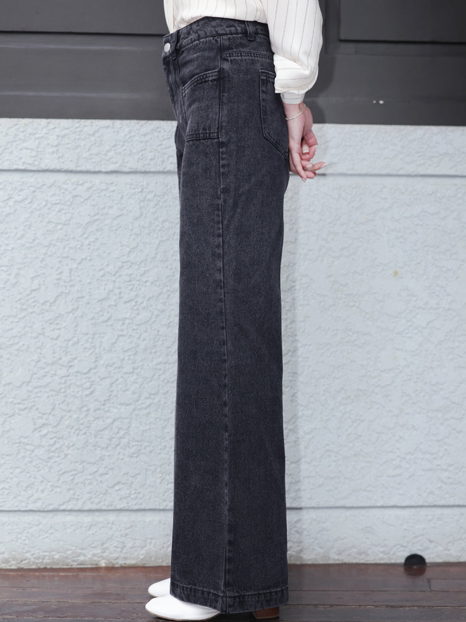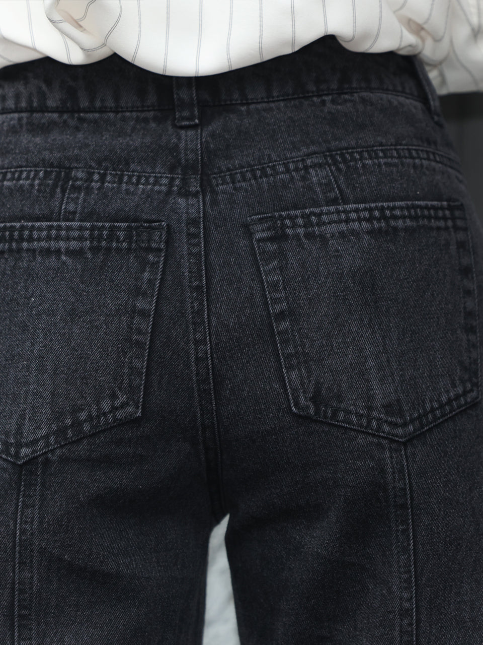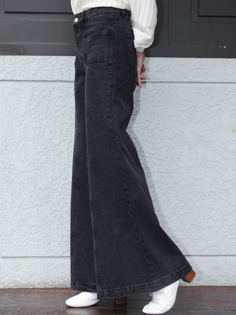 TYNVIE 水洗接缝喇叭牛仔裤 - 黑色