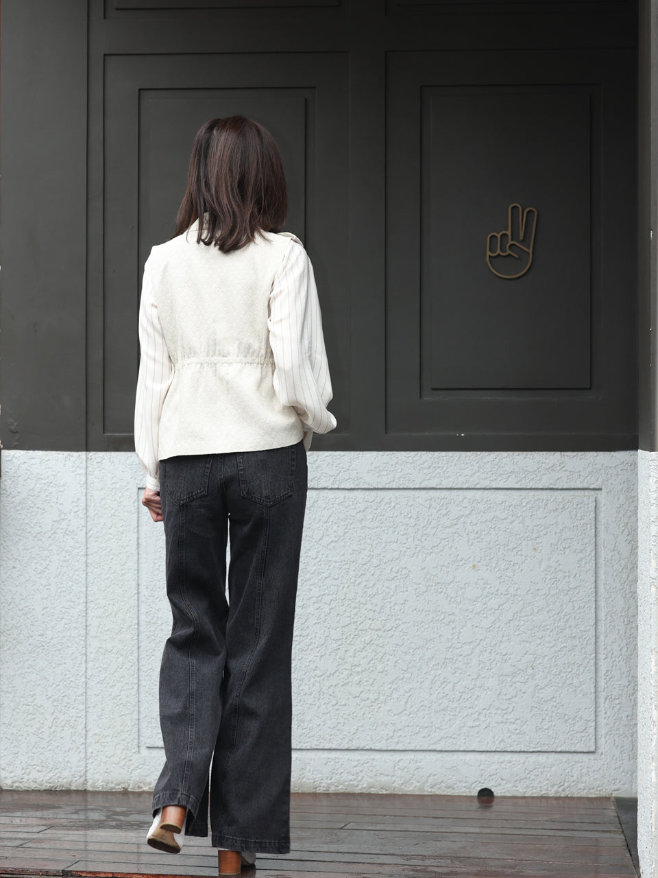 TYNVIE 插袋直筒阔腿裤-白色