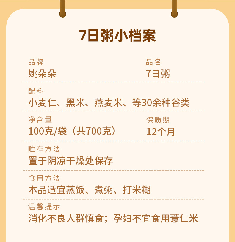 姚朵朵七日粥700g早餐粥料红豆薏米紫薯黑米粥料五谷杂粮粮组合
