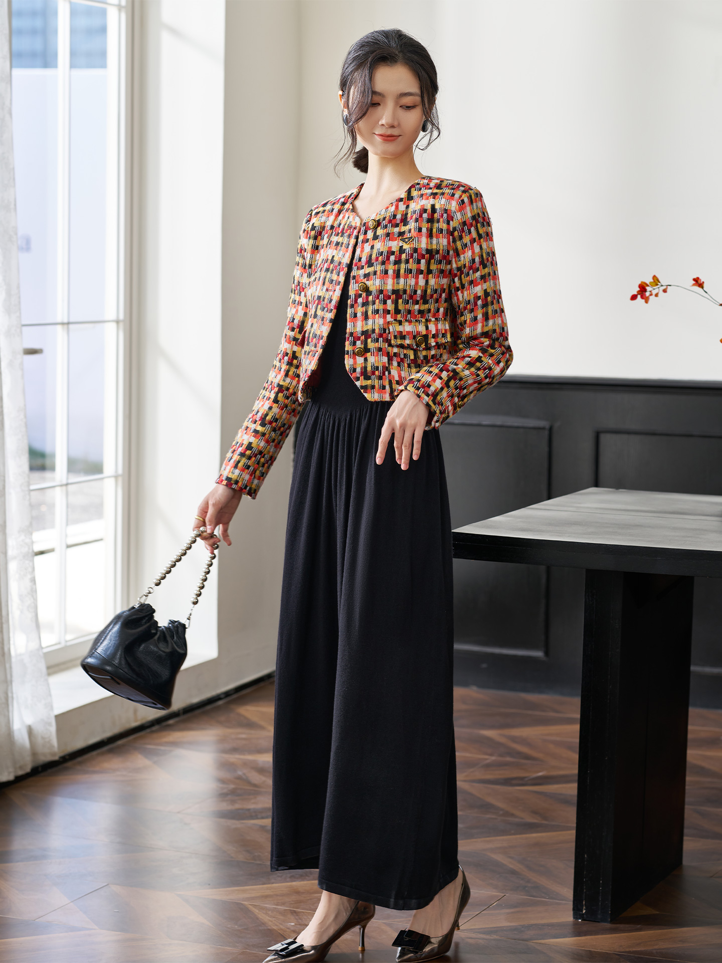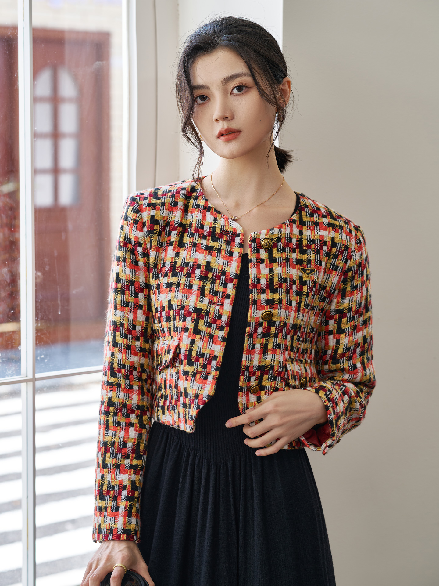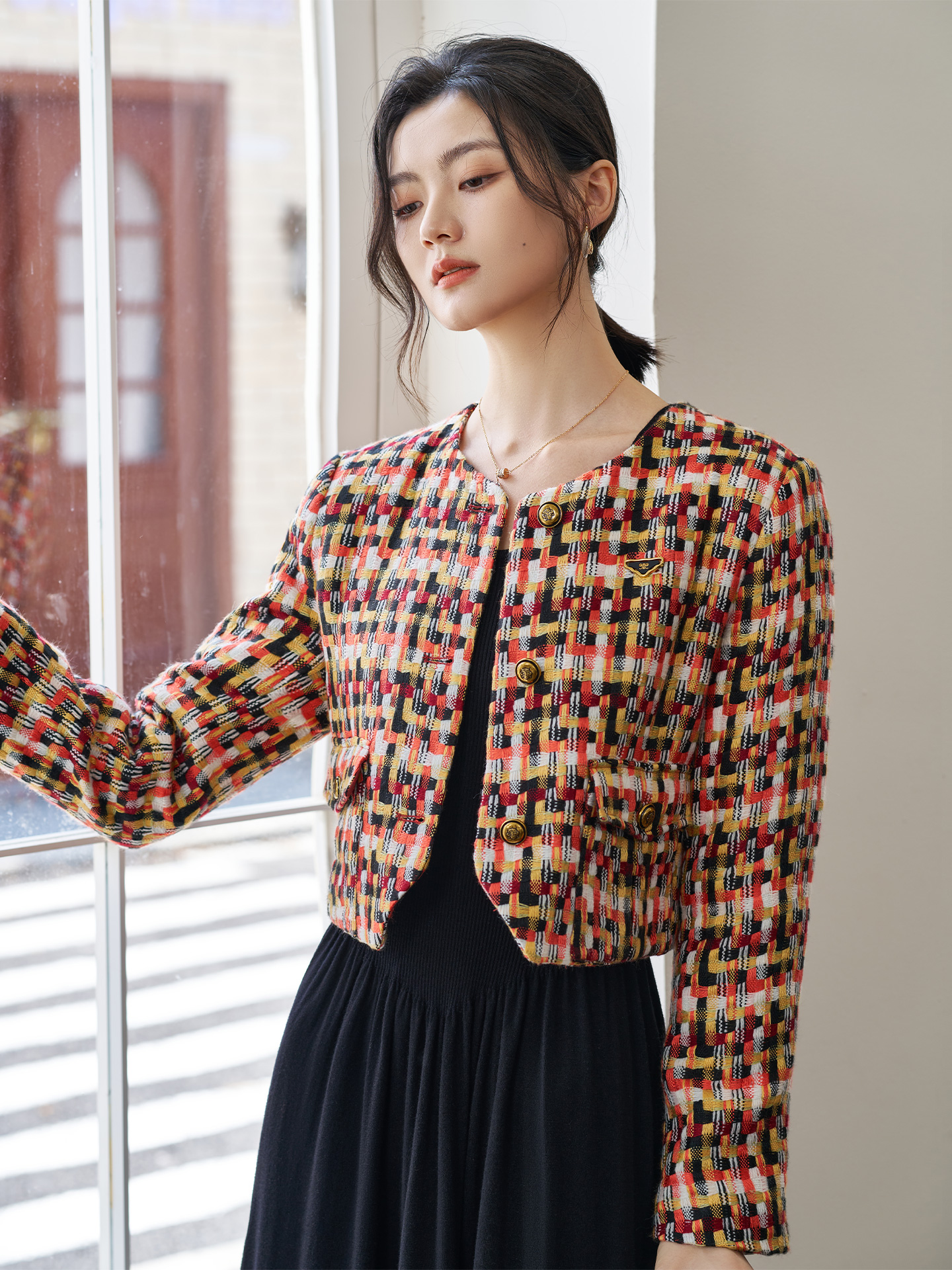 剩XL 柔软拼色纱线小香外套 25冬款复古名媛范气质上衣1688