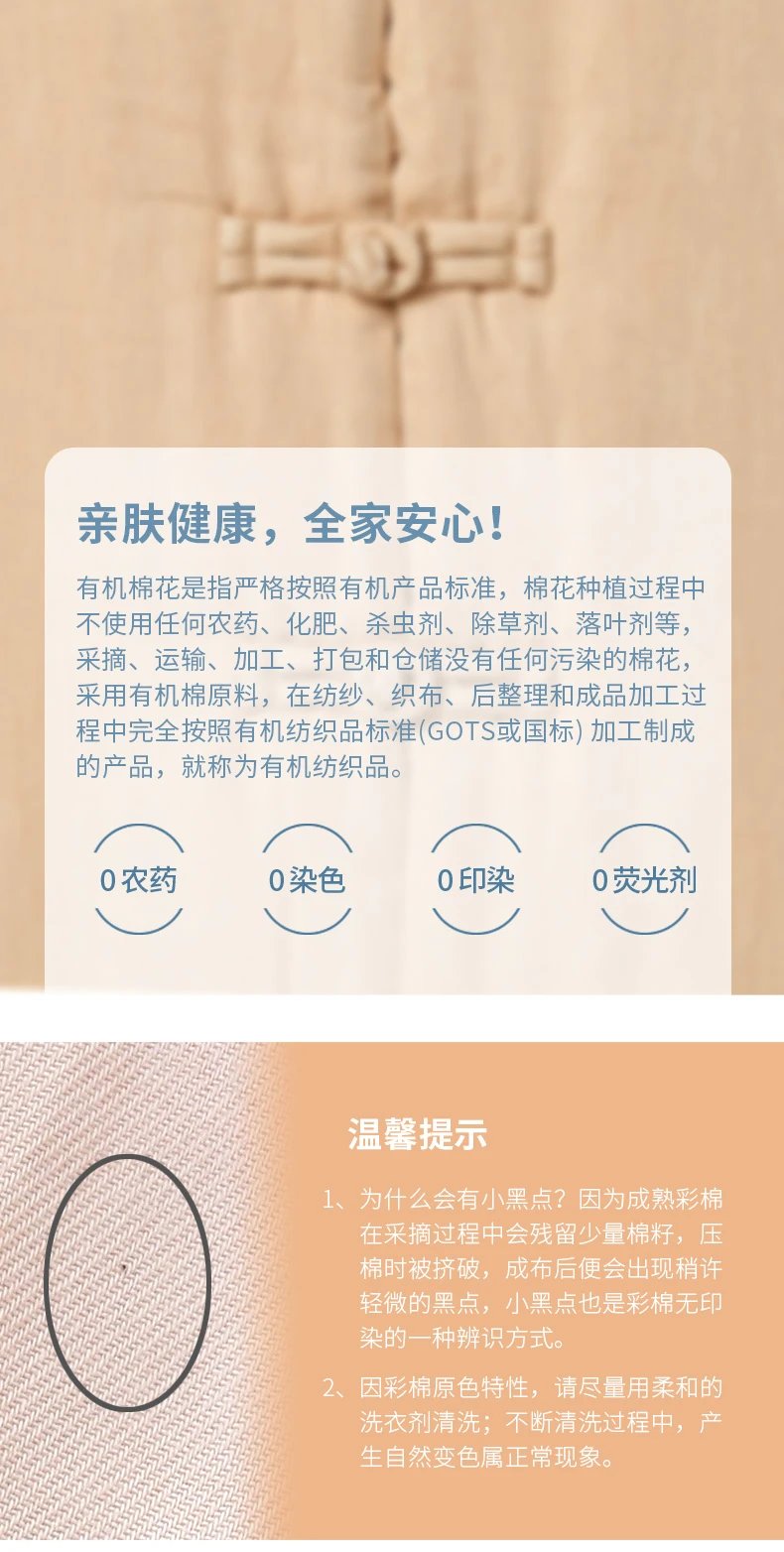 素道有机彩棉棉服 男女款 国风 100%棉 冬季保暖 传统盘扣 情侣款 收腰修身 不染色 亲肤舒适