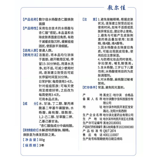 敷尔佳水杨酸杏仁酸焕肤面膜80g