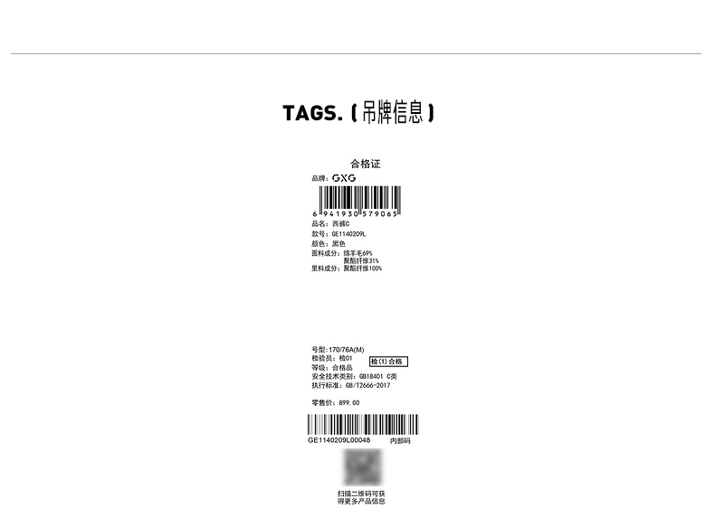 GXG男装黑色全羊毛基础休闲商务套西西裤 热卖休闲裤