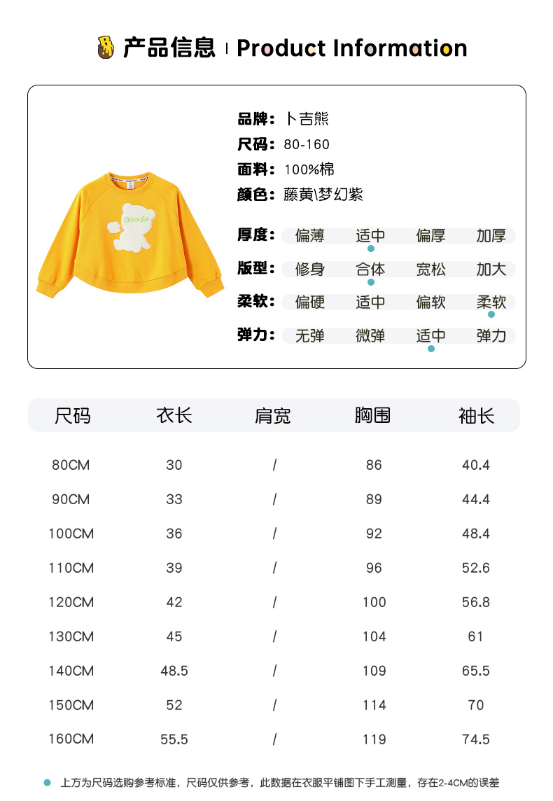BOOGIEBEAR卜吉熊童装春秋圆领卫衣80-160 GF3208513