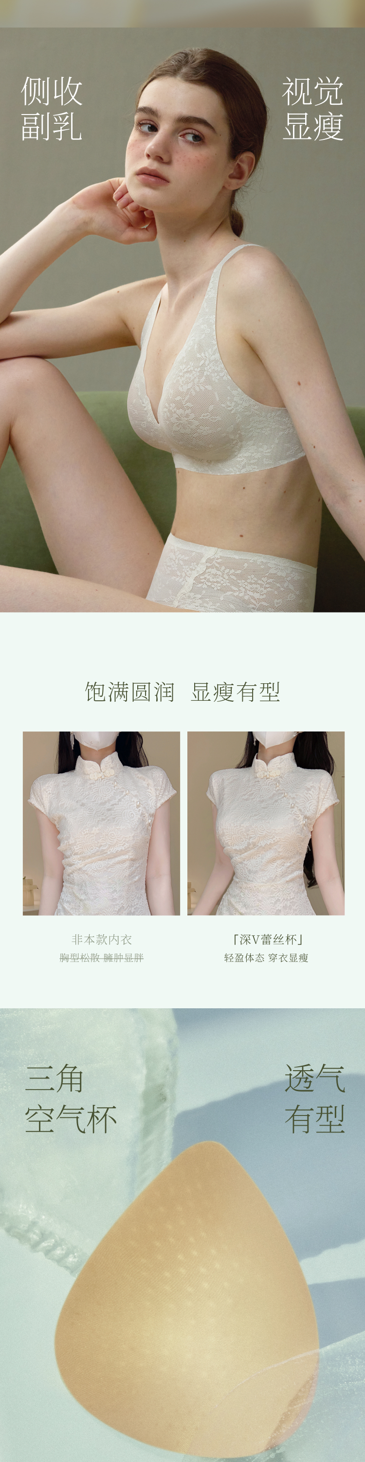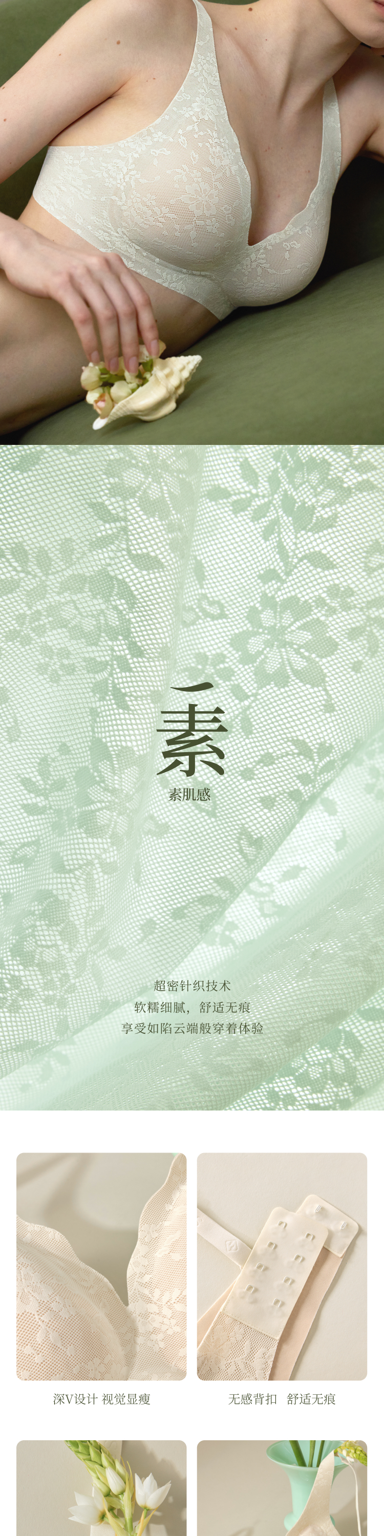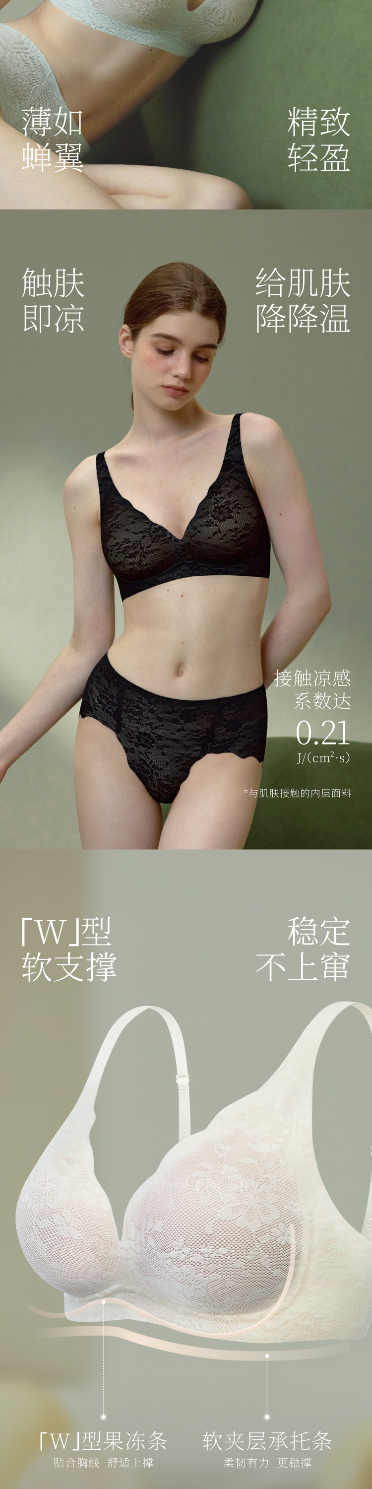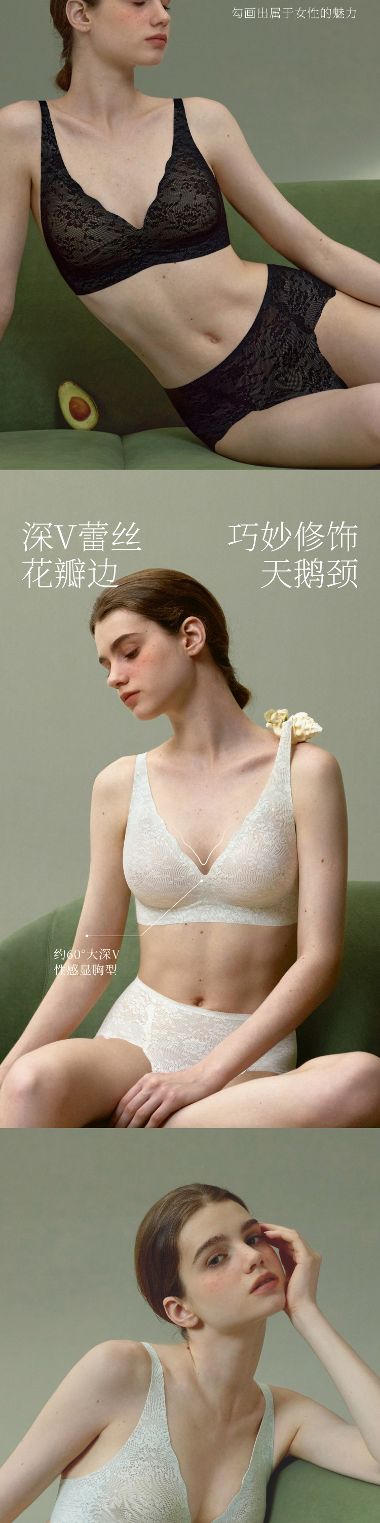素肌良品果冻条蕾丝内衣女性感深V薄款舒适防下垂无钢圈聚拢文胸-MX284+MX286-FX