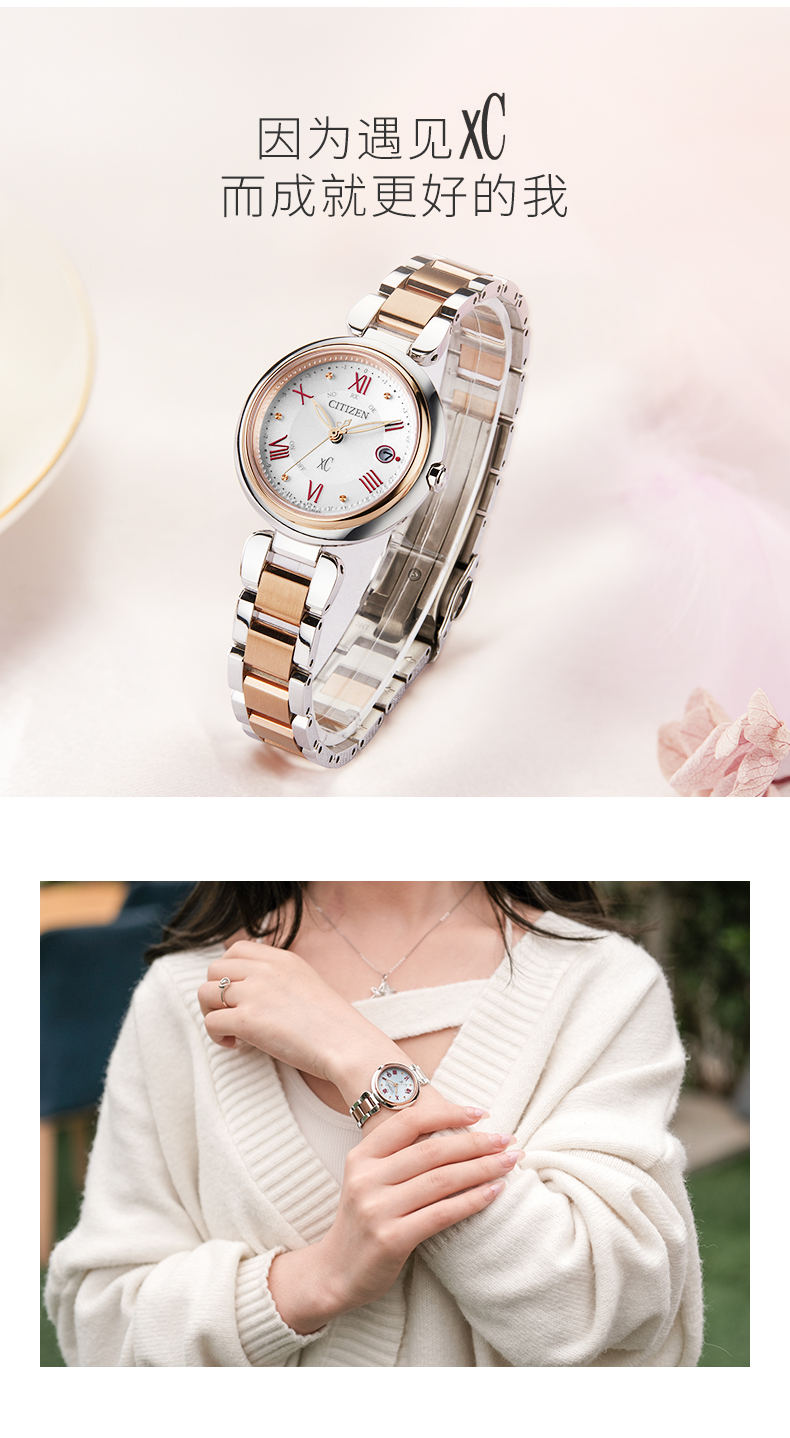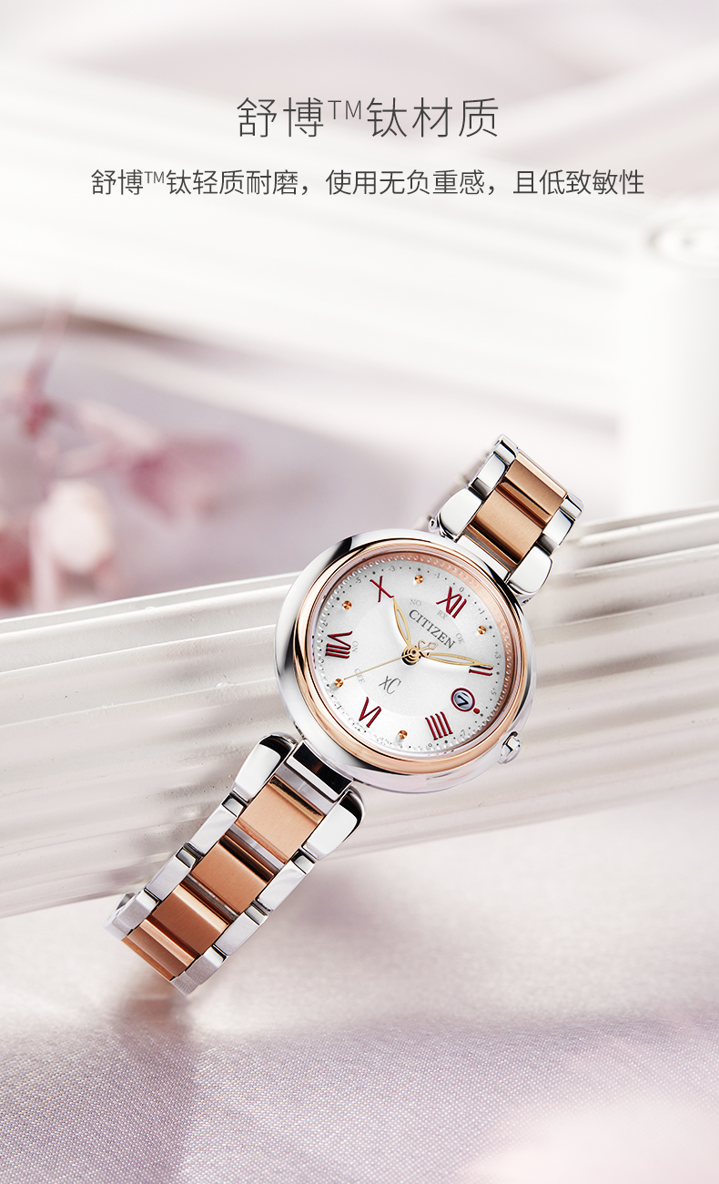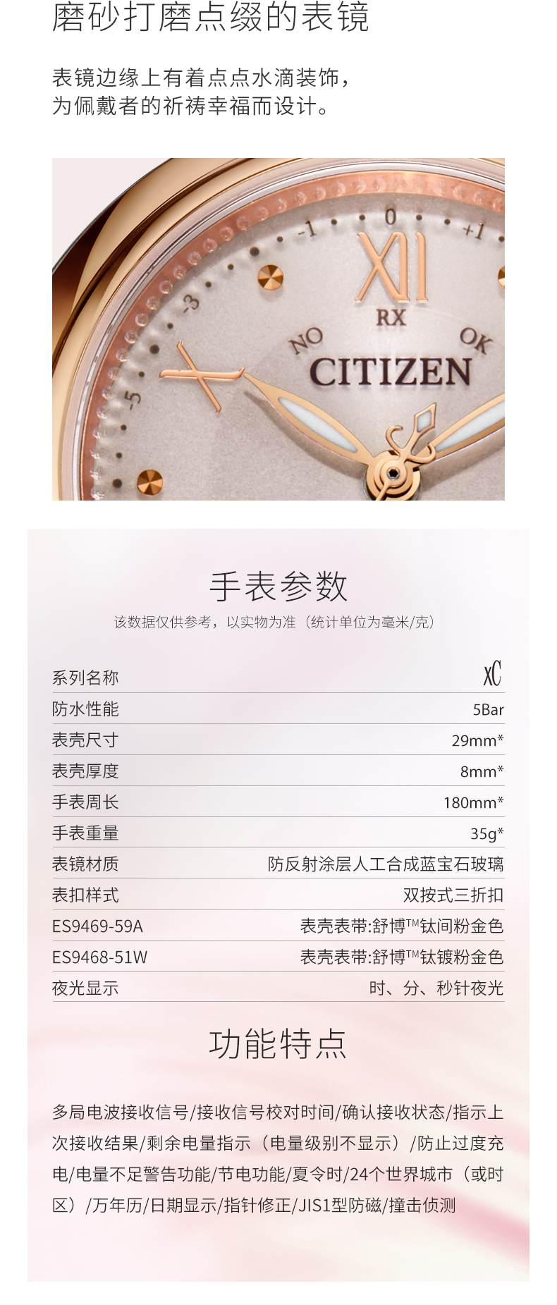 西铁城日本官方正品xC系列新款舒博钛光动能多局电波手表女ES9468-51W