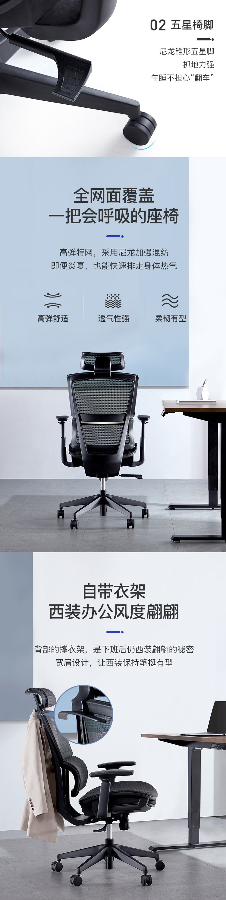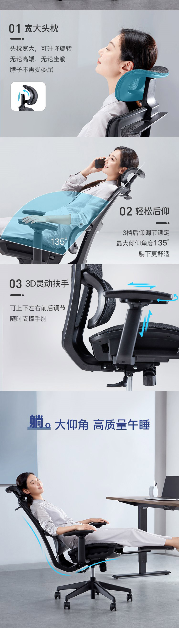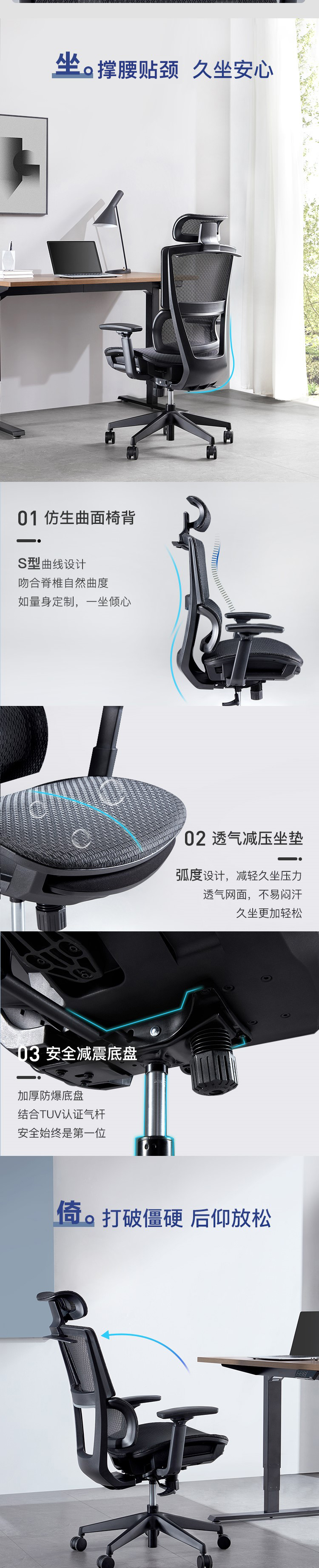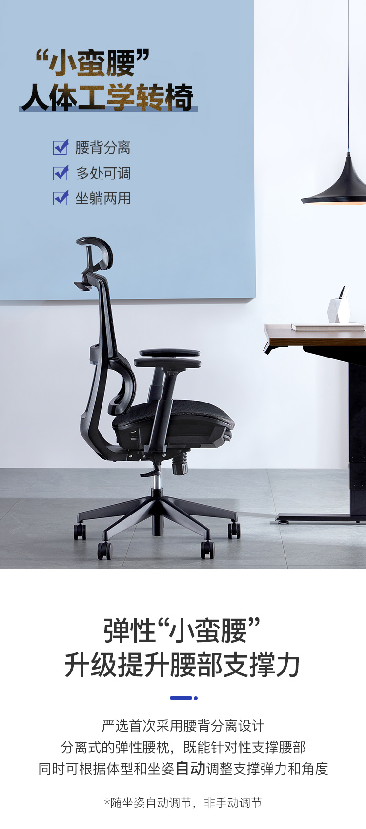 网易严选 小蛮腰系列 人体工程学转椅办公椅可躺电脑椅靠背椅子家用转椅伸缩脚踏 坐躺两用
