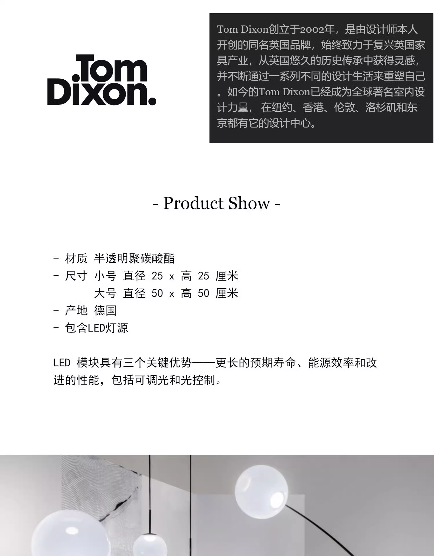 Tom Dixon英国原装Opal北欧简约黑白球形装饰LED吊灯壁灯吸顶灯