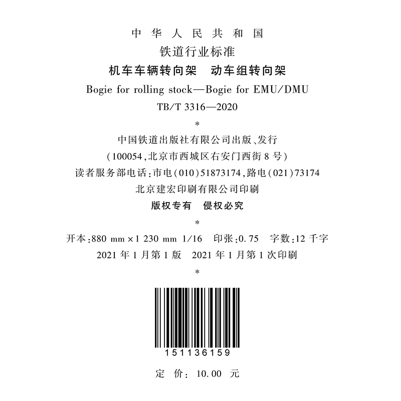 15113.6159机车车辆转向架 动车组转向架 TB/T3316-2020
