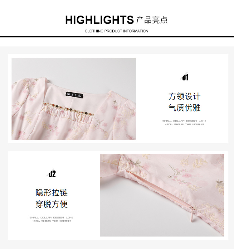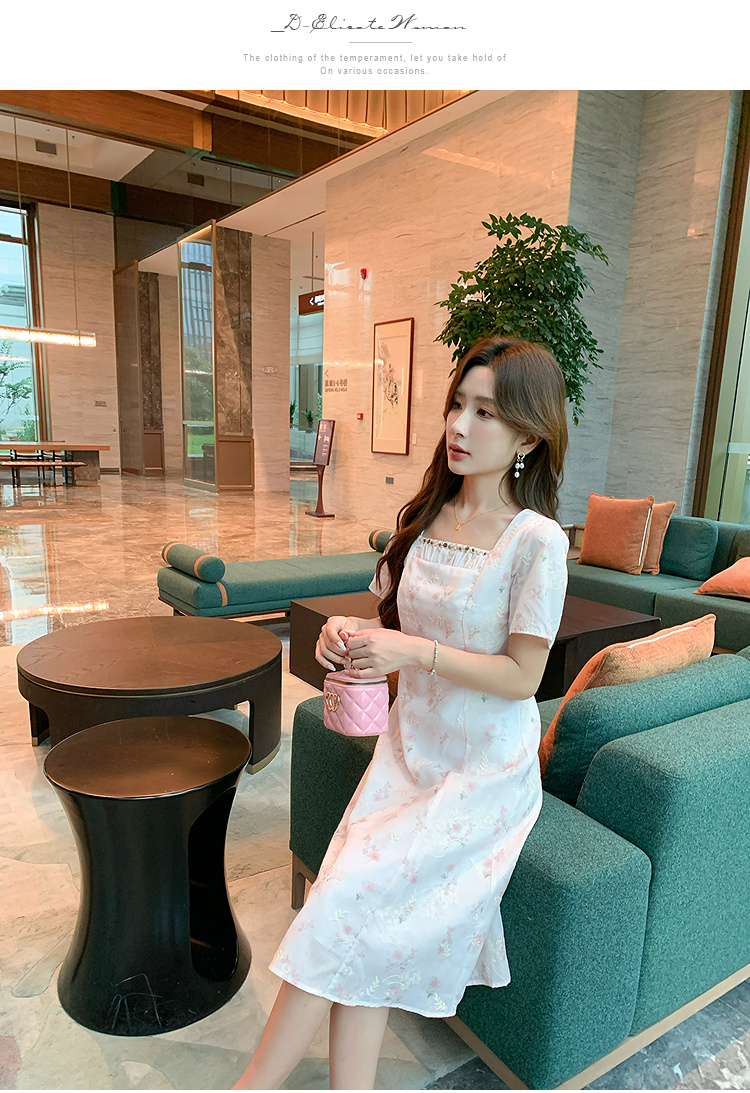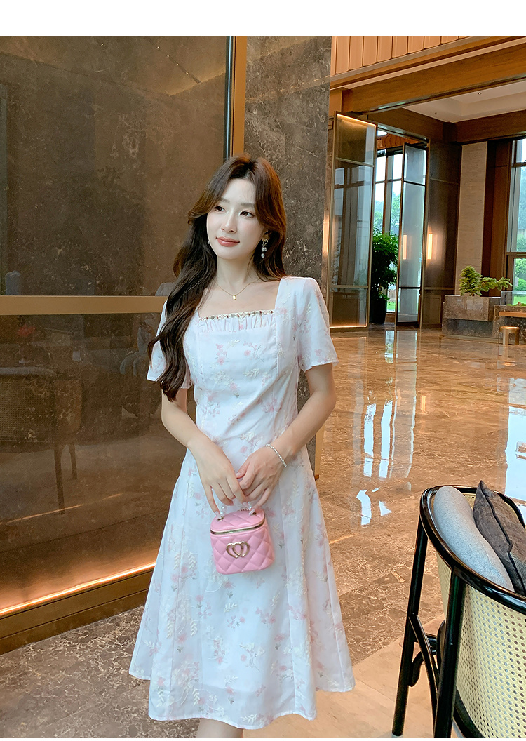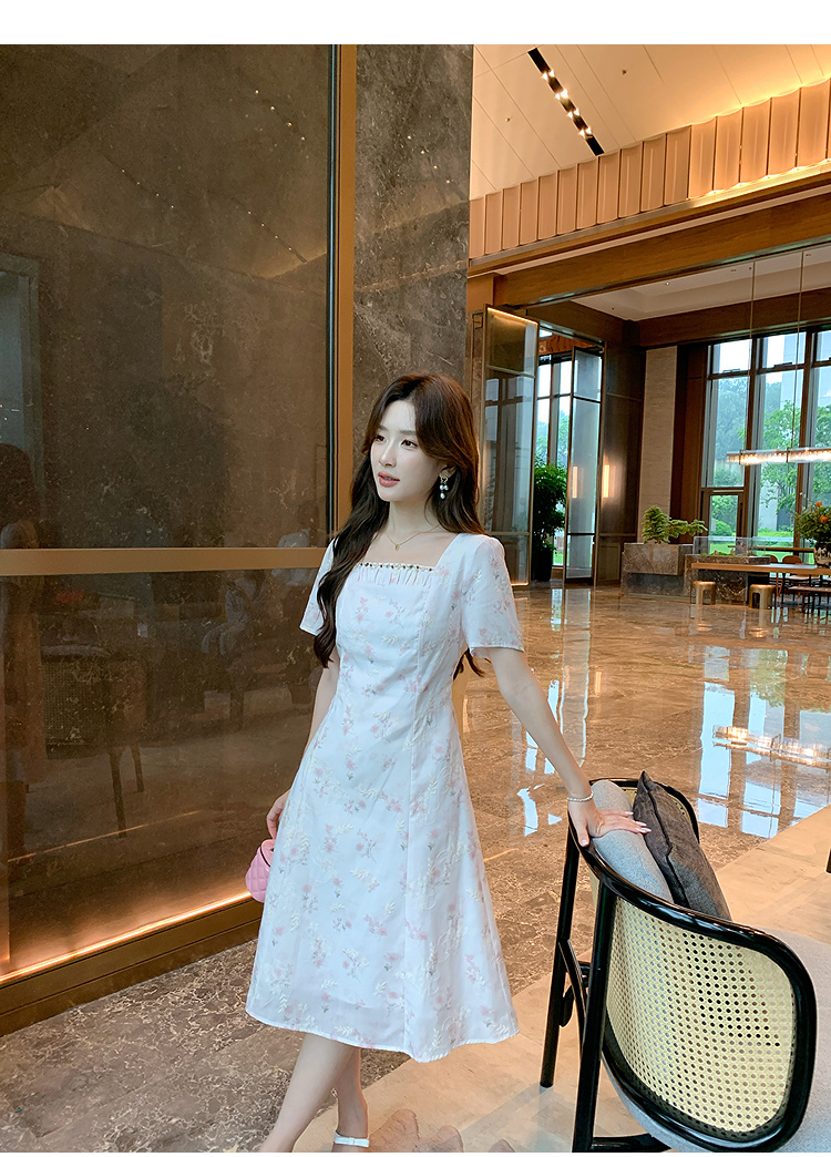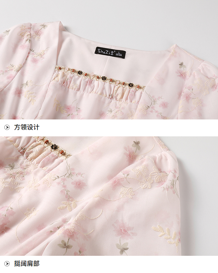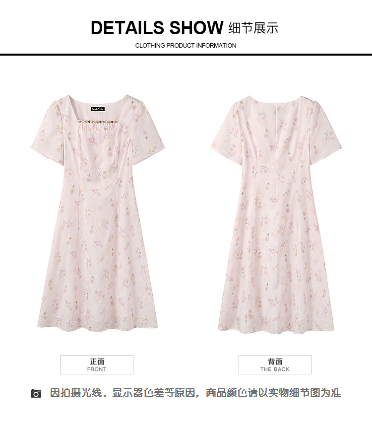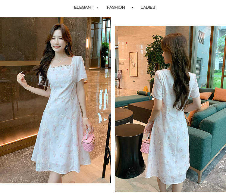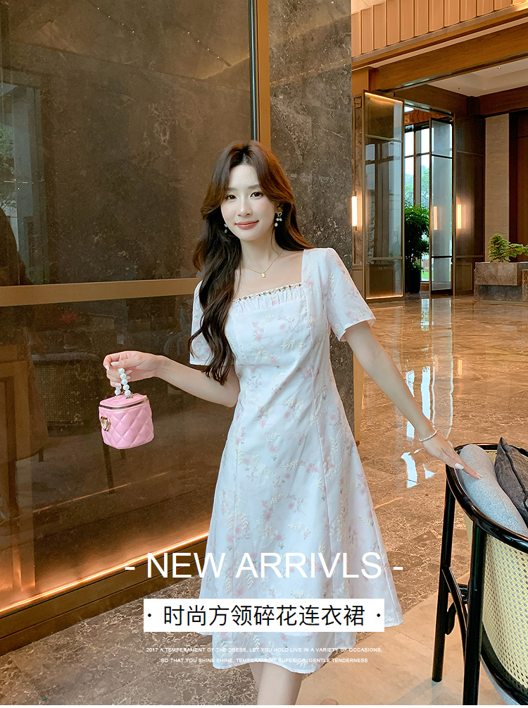 奢姿大码女装2025夏季时尚方领短袖连衣裙胖妹妹气质减龄碎花裙子9952890592