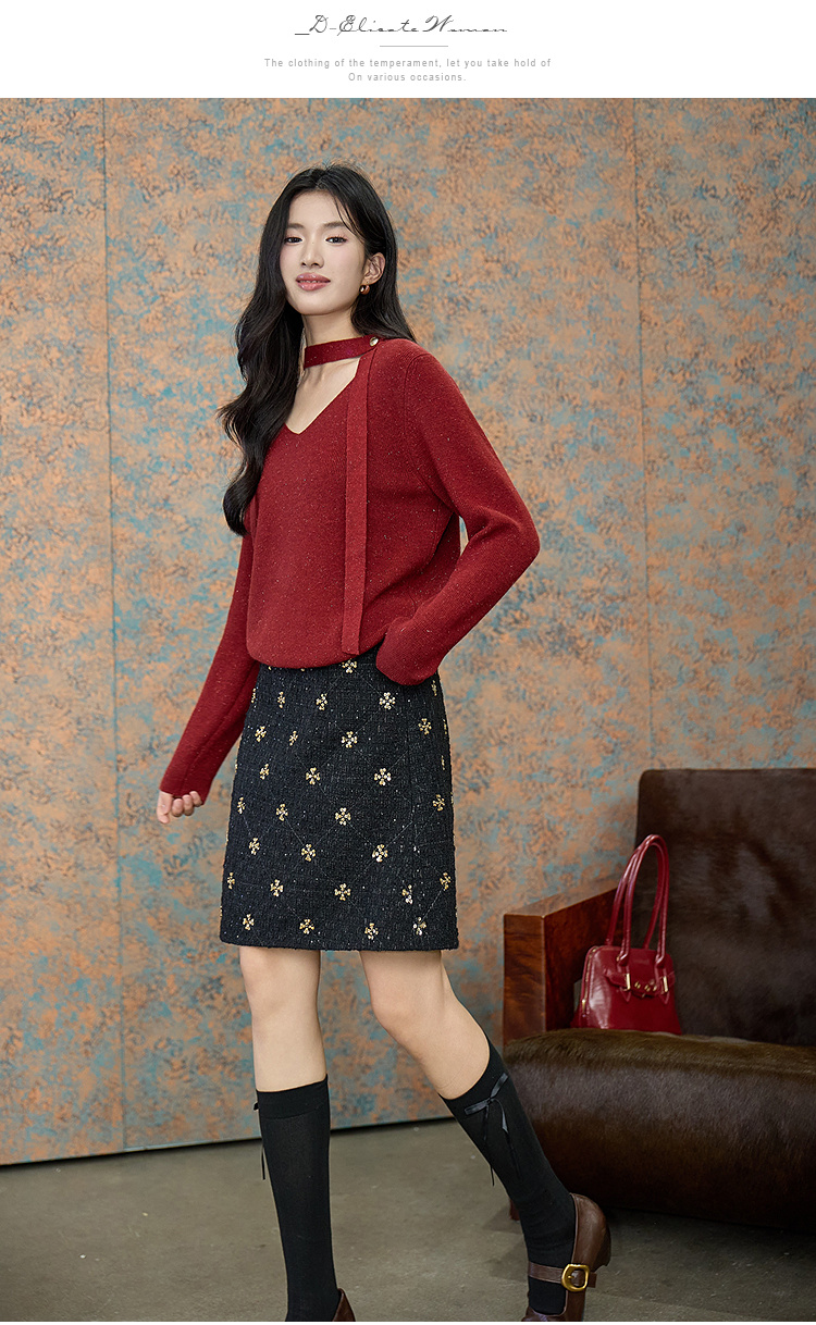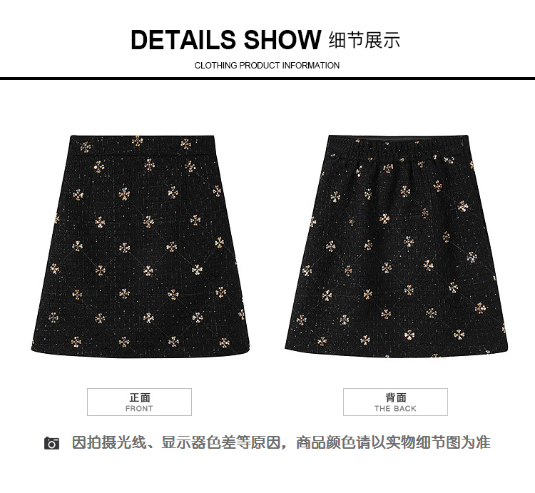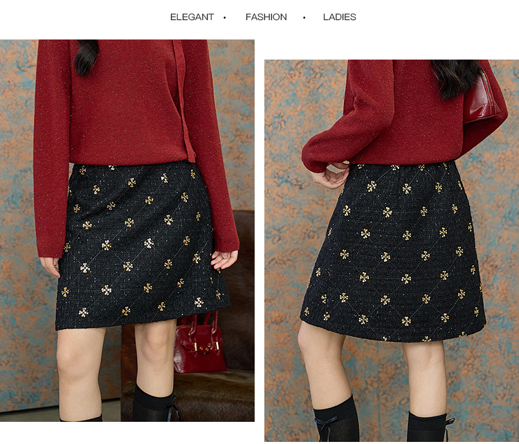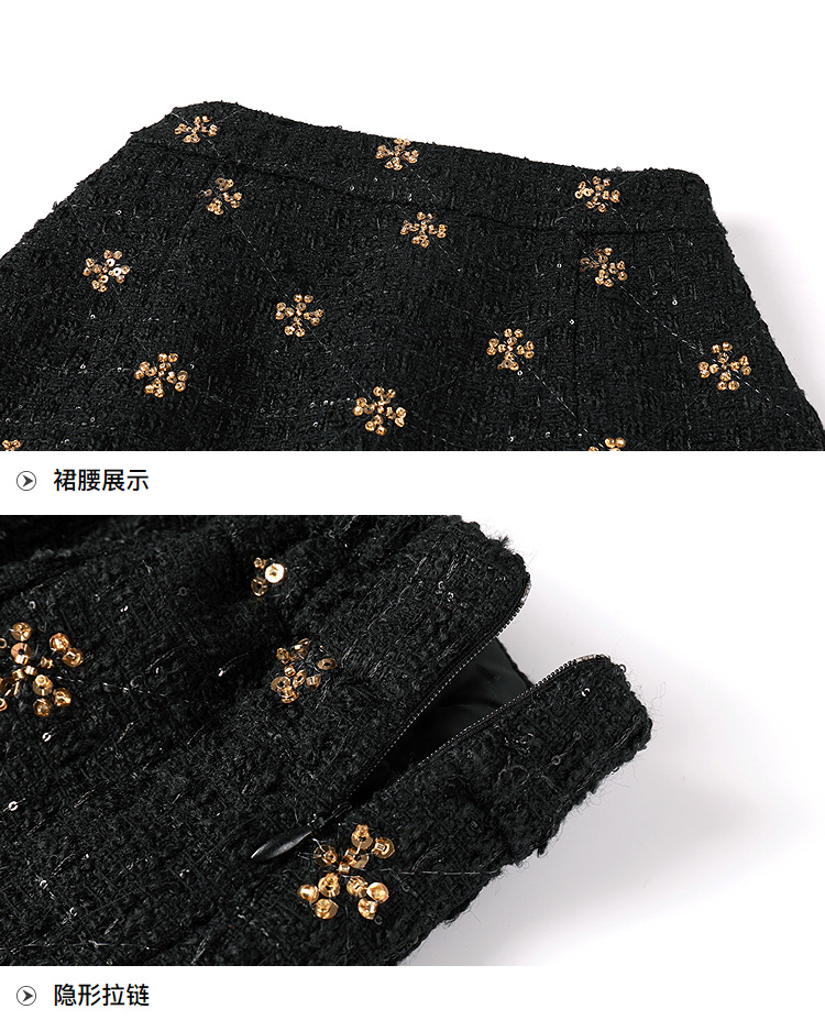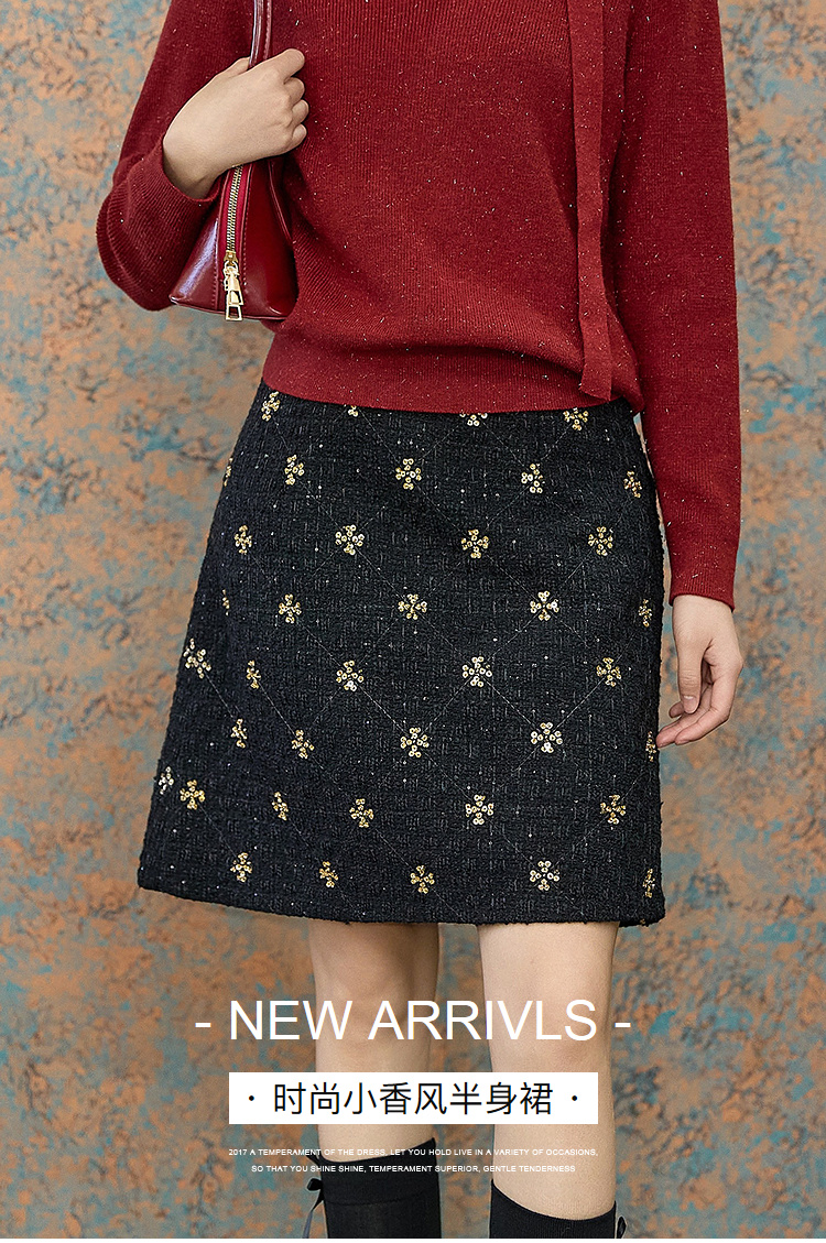 奢姿大码女装2025冬季小香风绣珠片花朵设计半身裙胖妹妹时尚裙子9954470625B