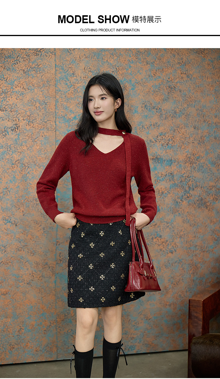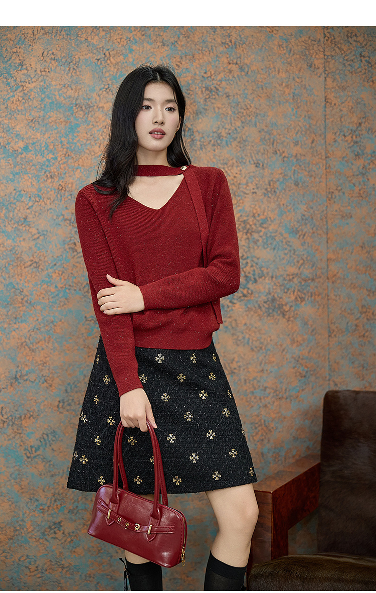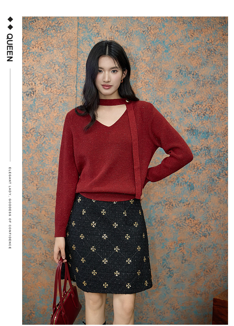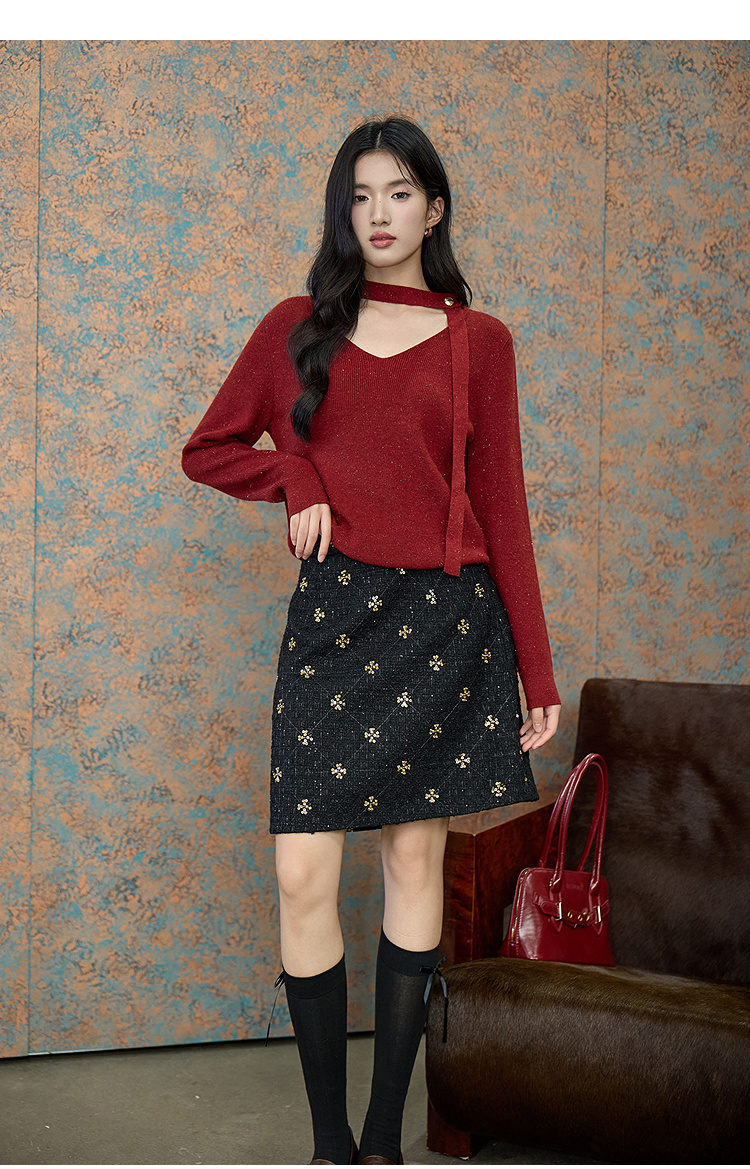 奢姿大码女装2025冬季小香风绣珠片花朵设计半身裙胖妹妹时尚裙子9954470625B