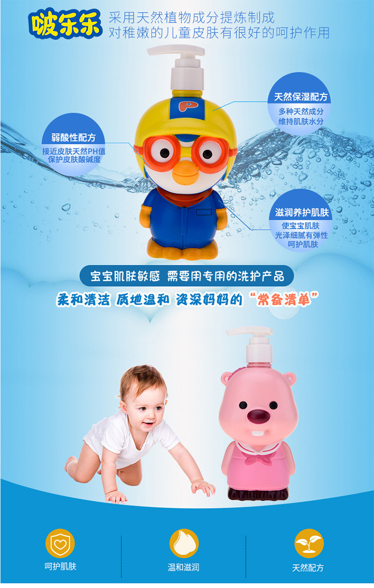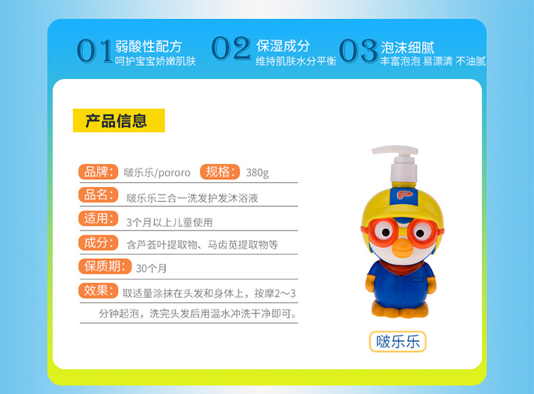 啵乐乐三合一洗发护发沐浴液380gpororo啵乐乐儿童沐浴露洗发水护发素三合一宝宝洗澡滋润保湿