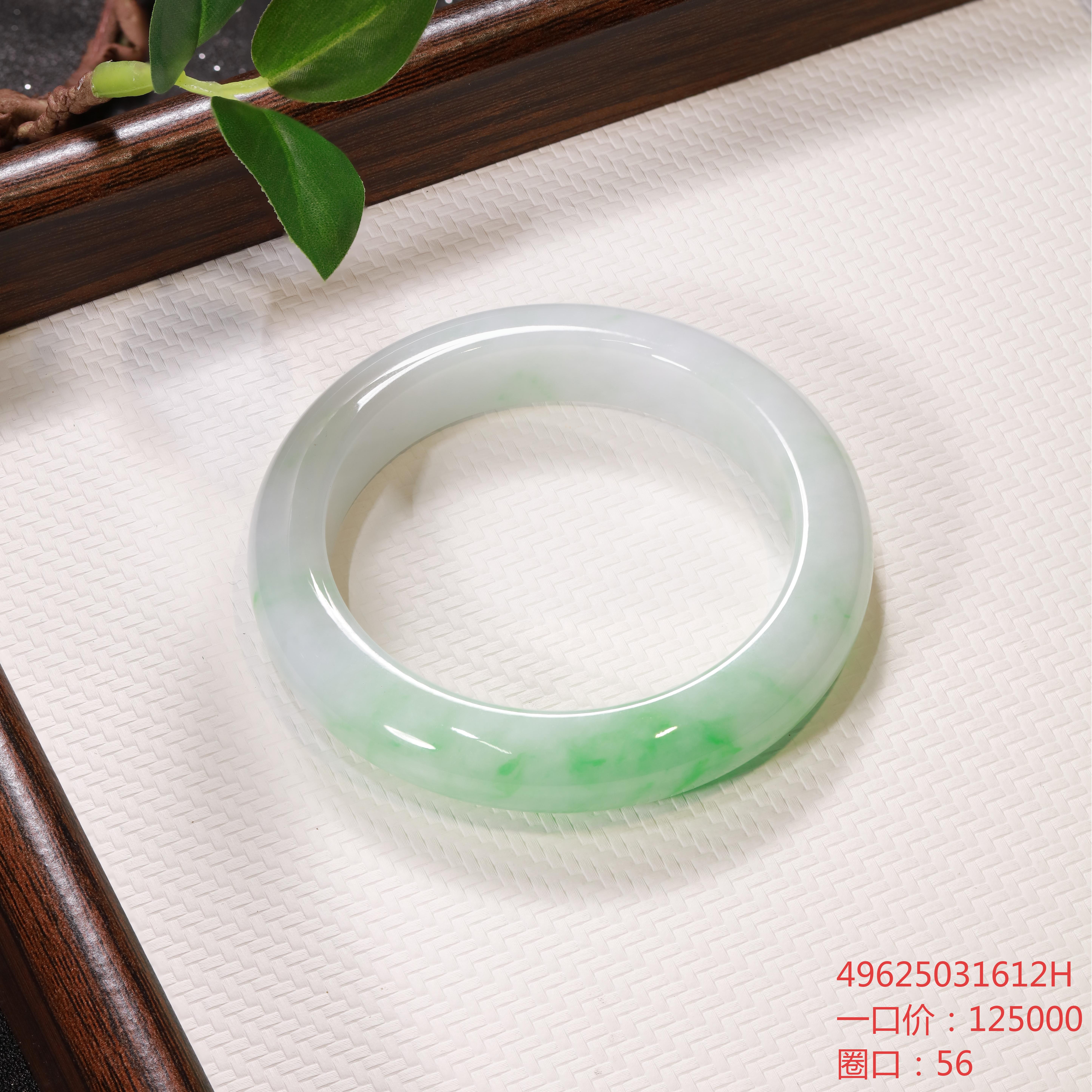 高货青绿色翡翠手镯 传家宝温润圆满中式翡翠手镯49625031612H(一口价)
