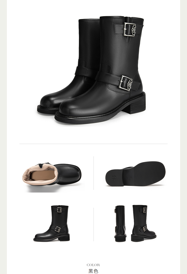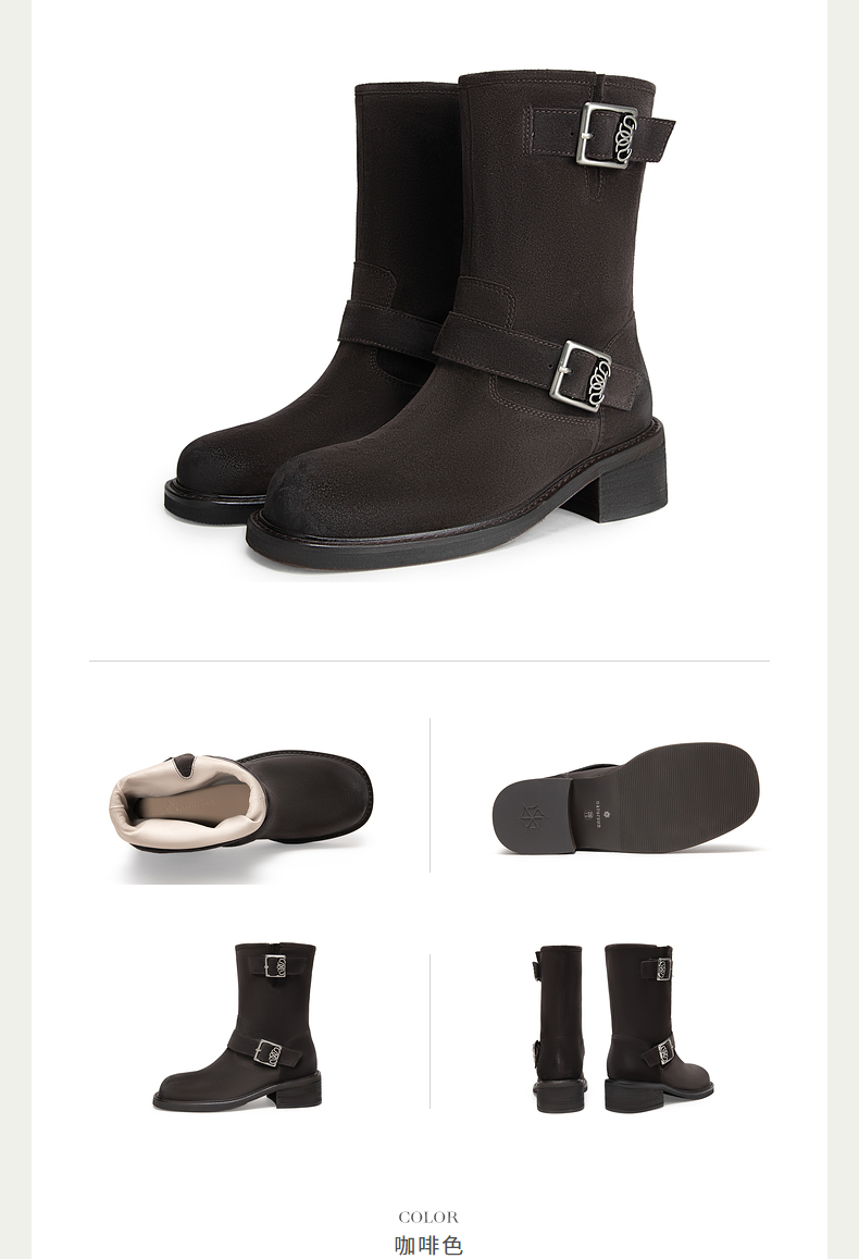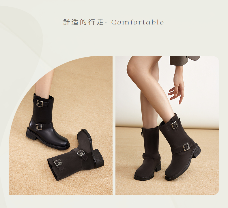 natursun骑士靴女厚底不累脚短靴时装靴美拉德靴子N24556401