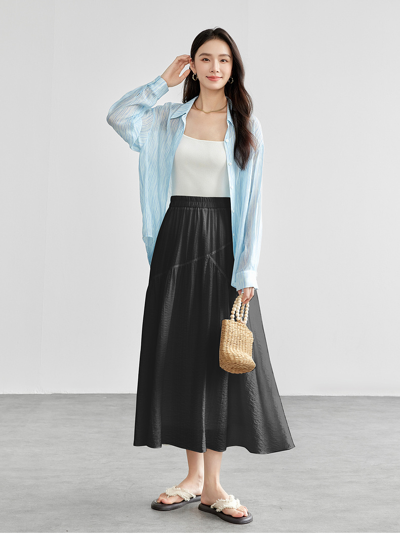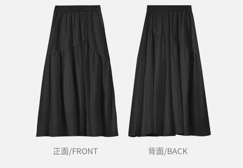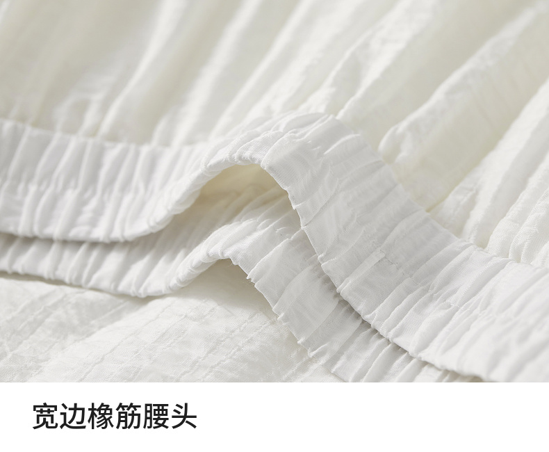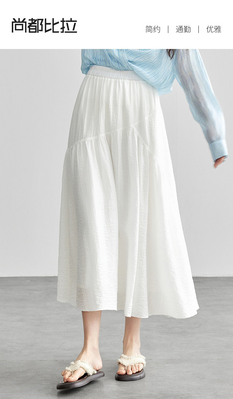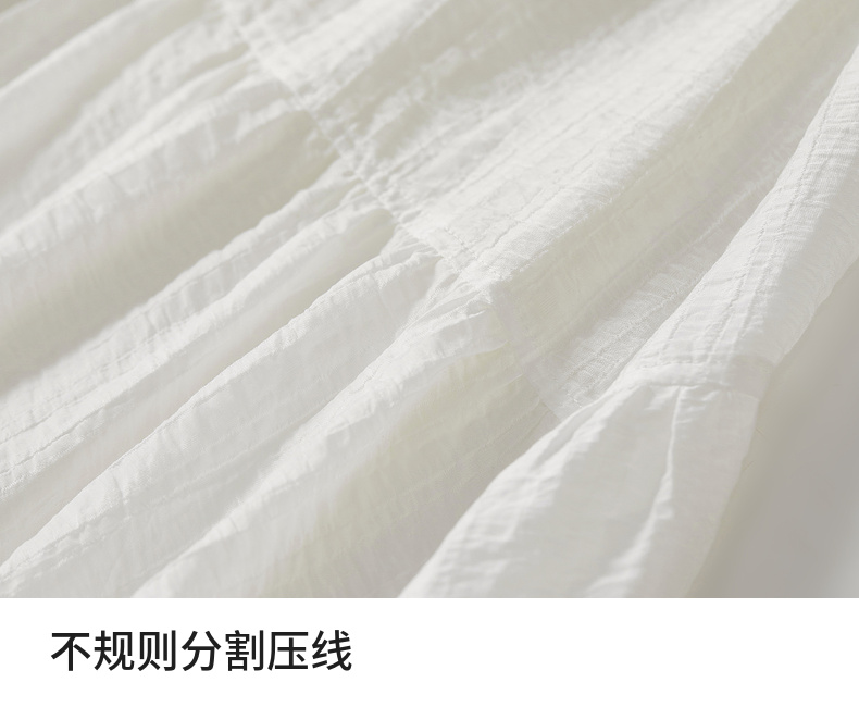 【内购】飘逸天丝半身裙橡筋腰度假风白色半裙女设计感分割线大裙摆-151Q58121