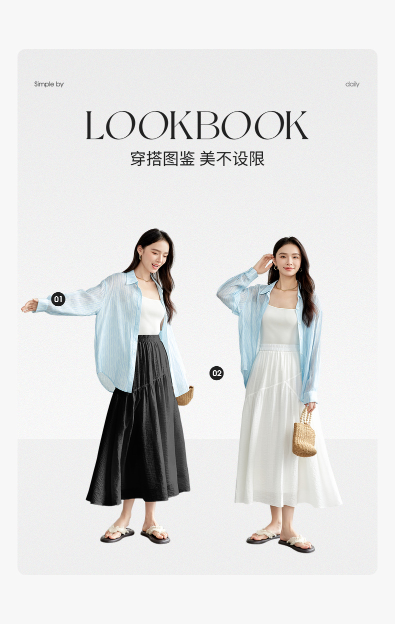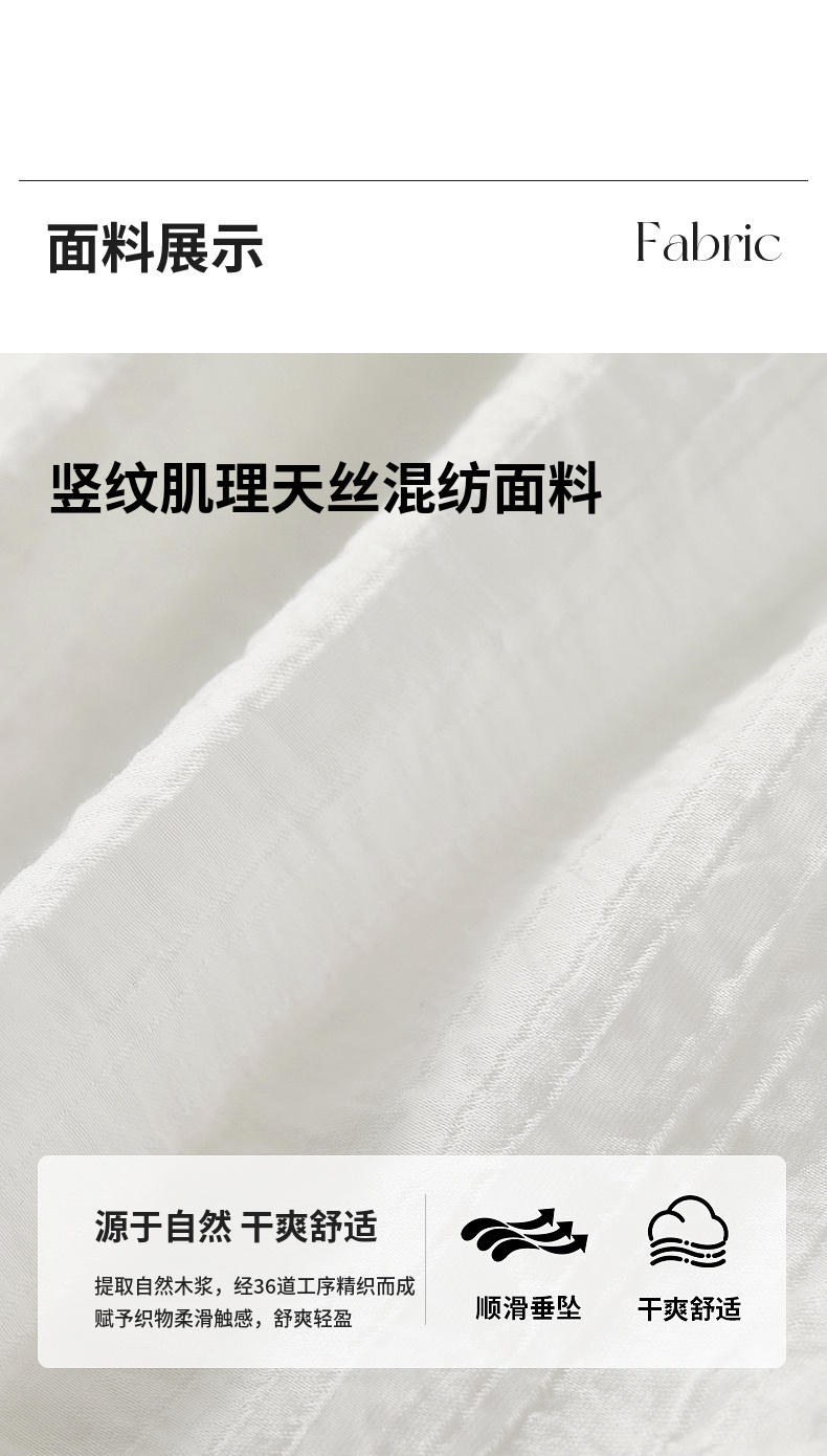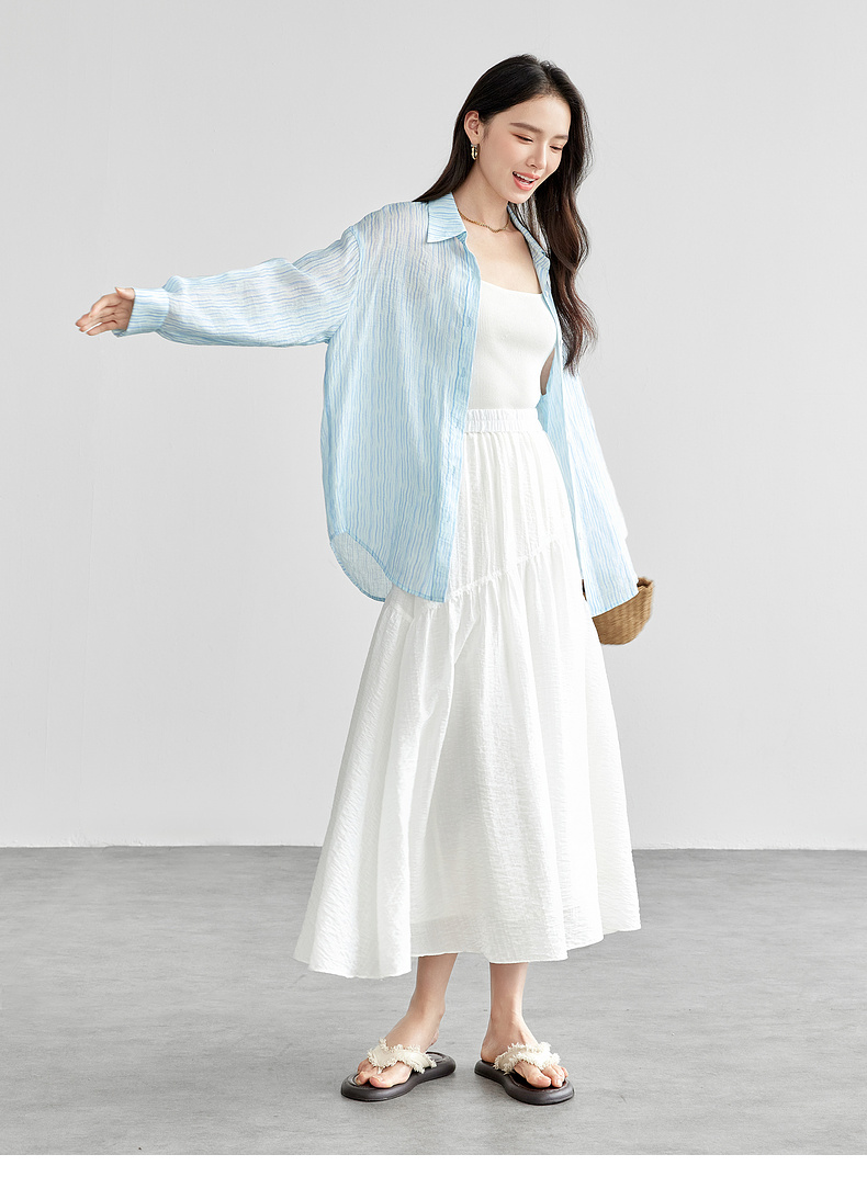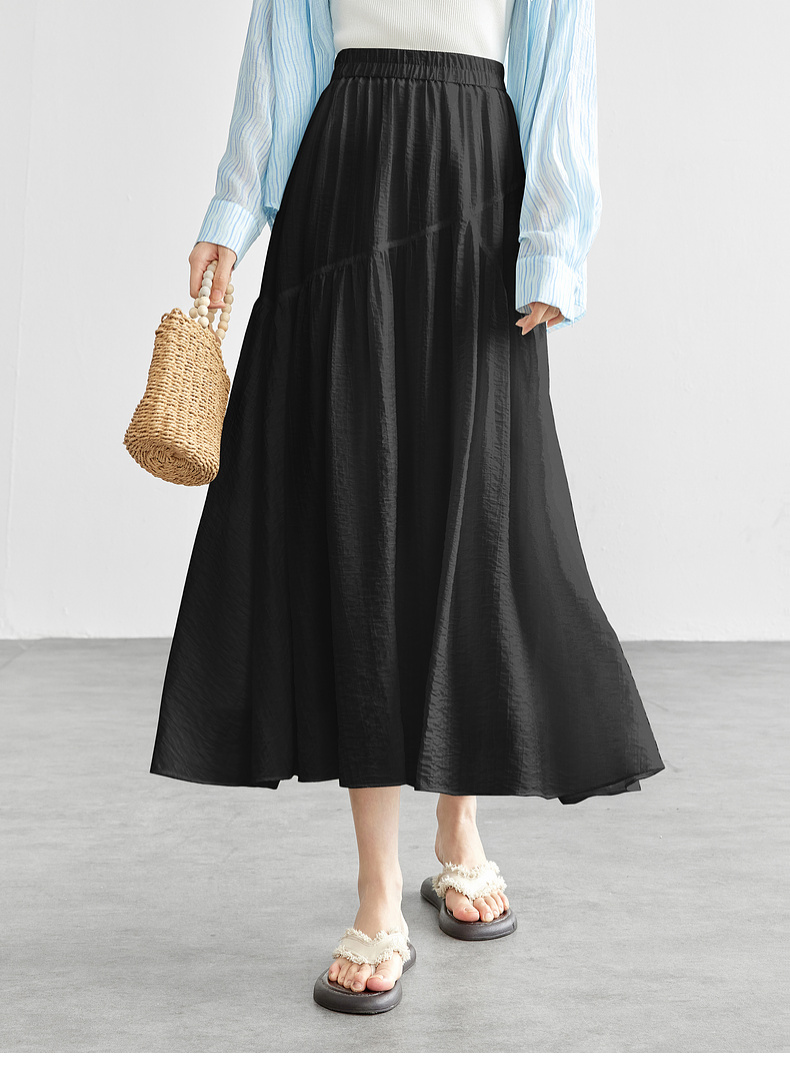 【内购】飘逸天丝半身裙橡筋腰度假风白色半裙女设计感分割线大裙摆-151Q58121