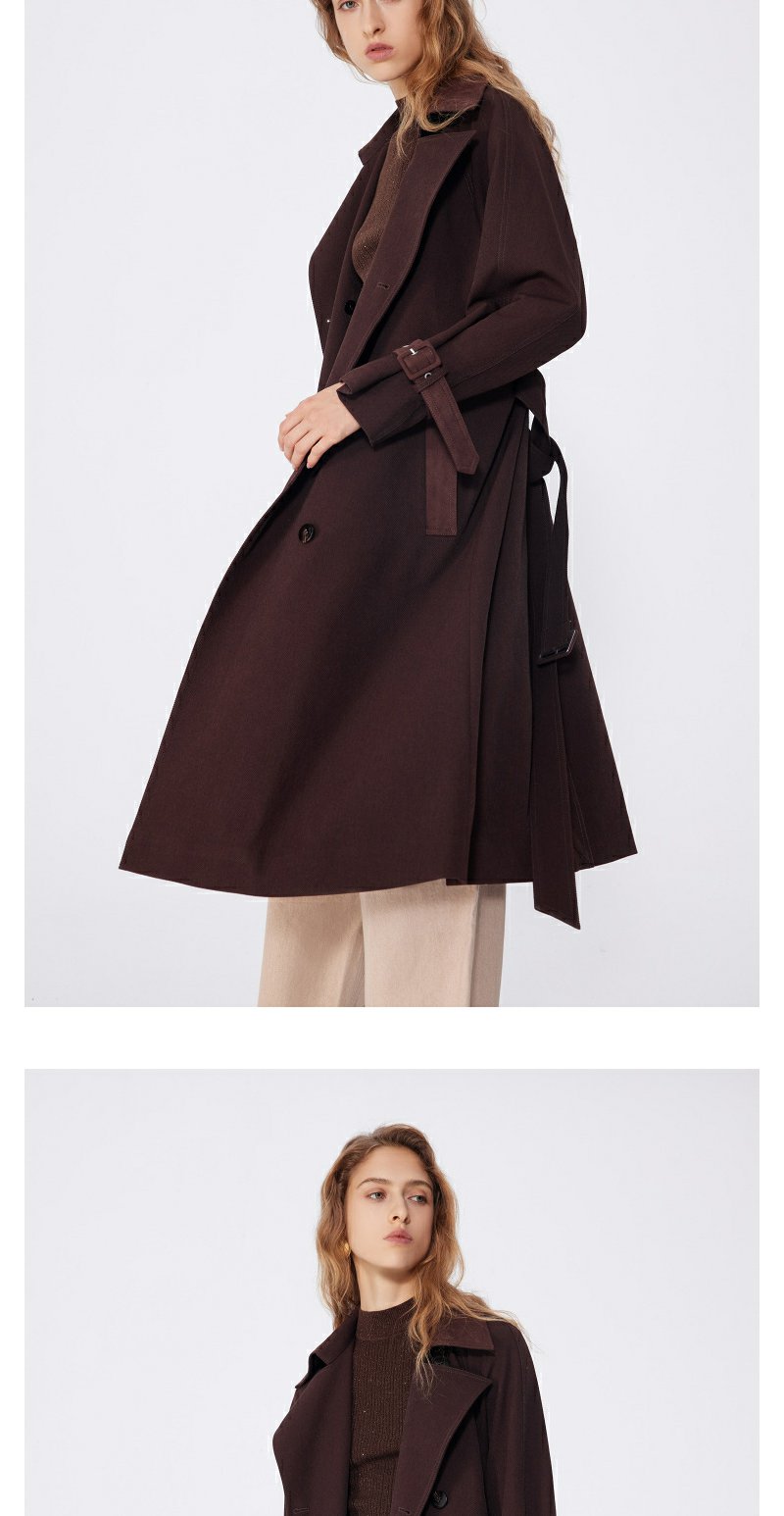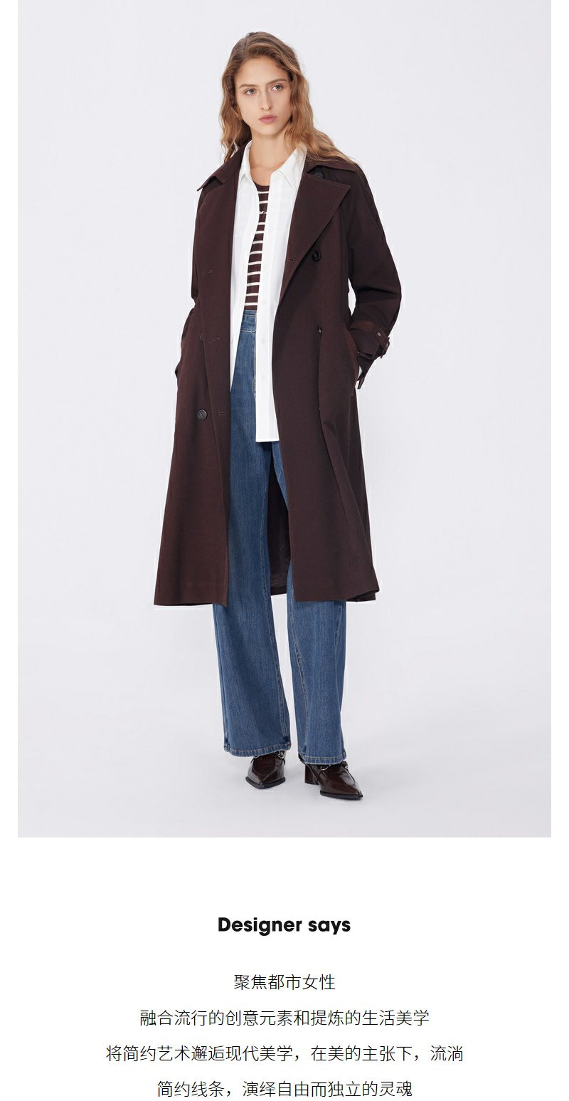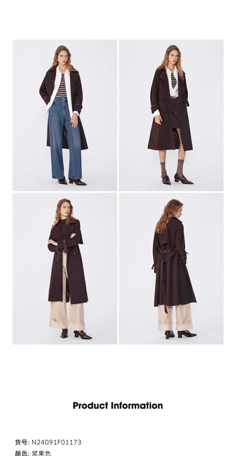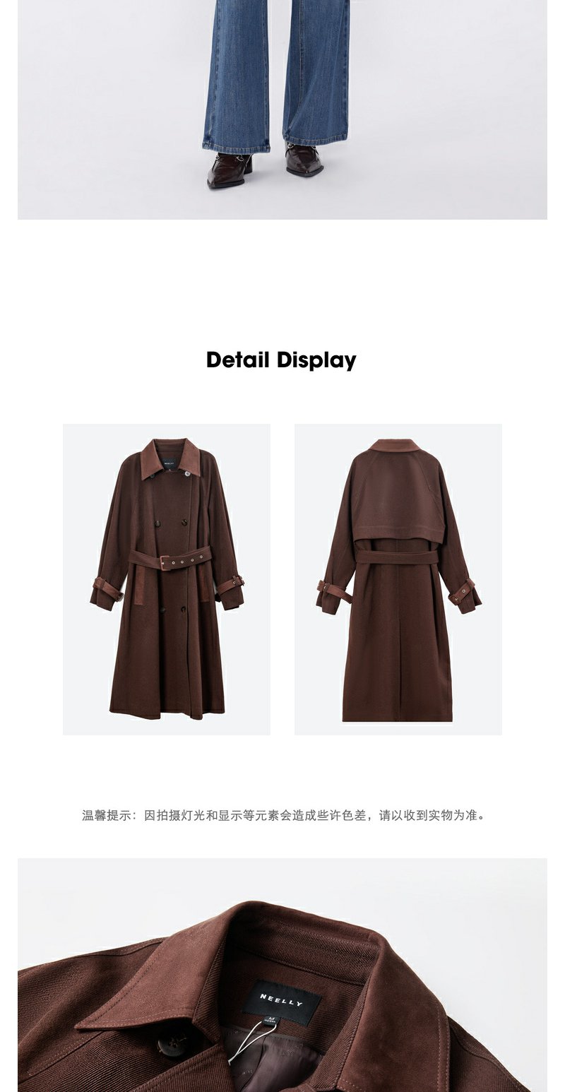 NEELLY纳俪秋季新款商场同款美拉德宽松双排扣风衣女复古长外套N25094F04618