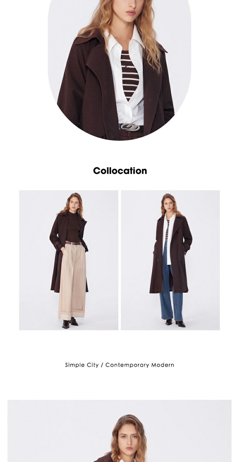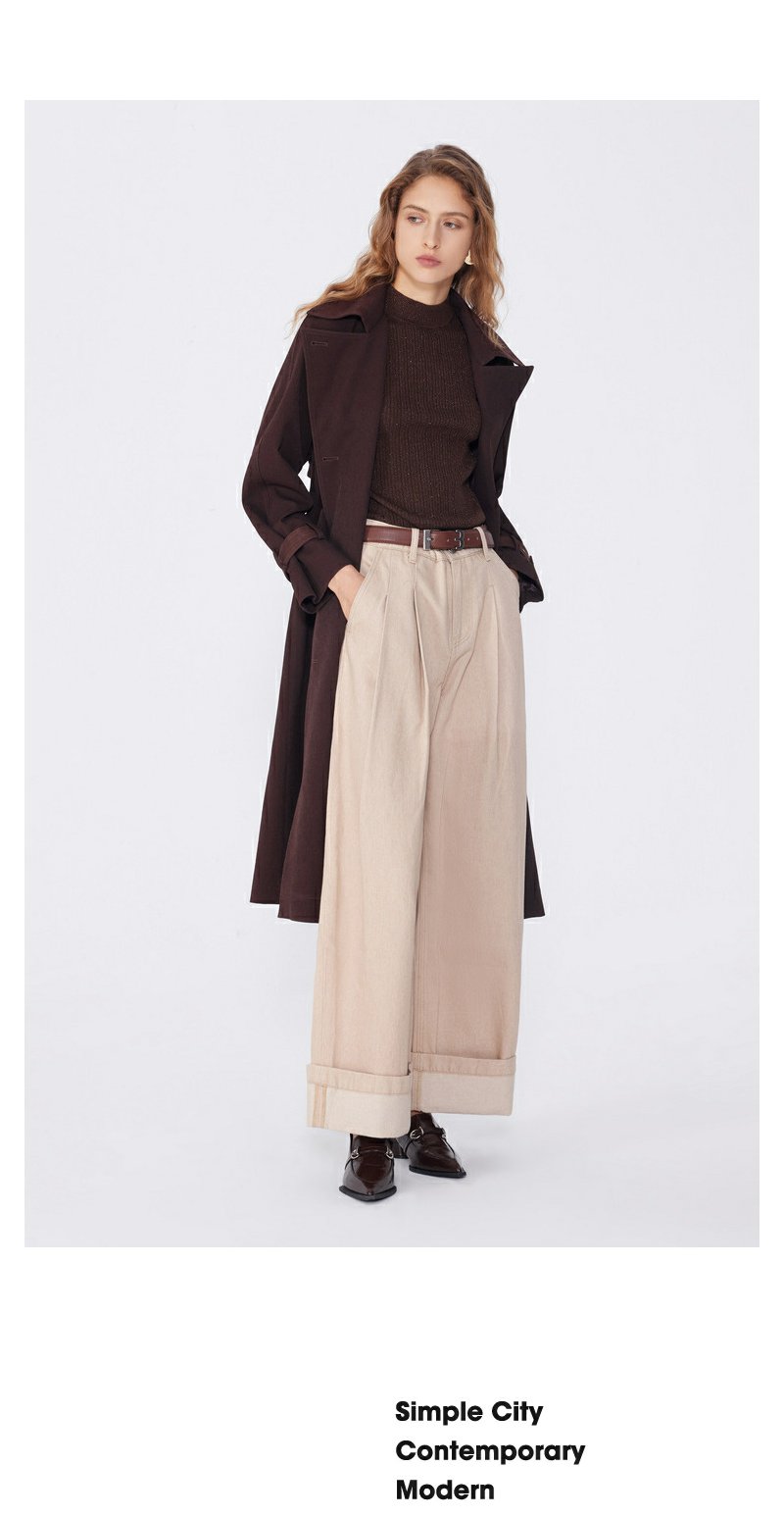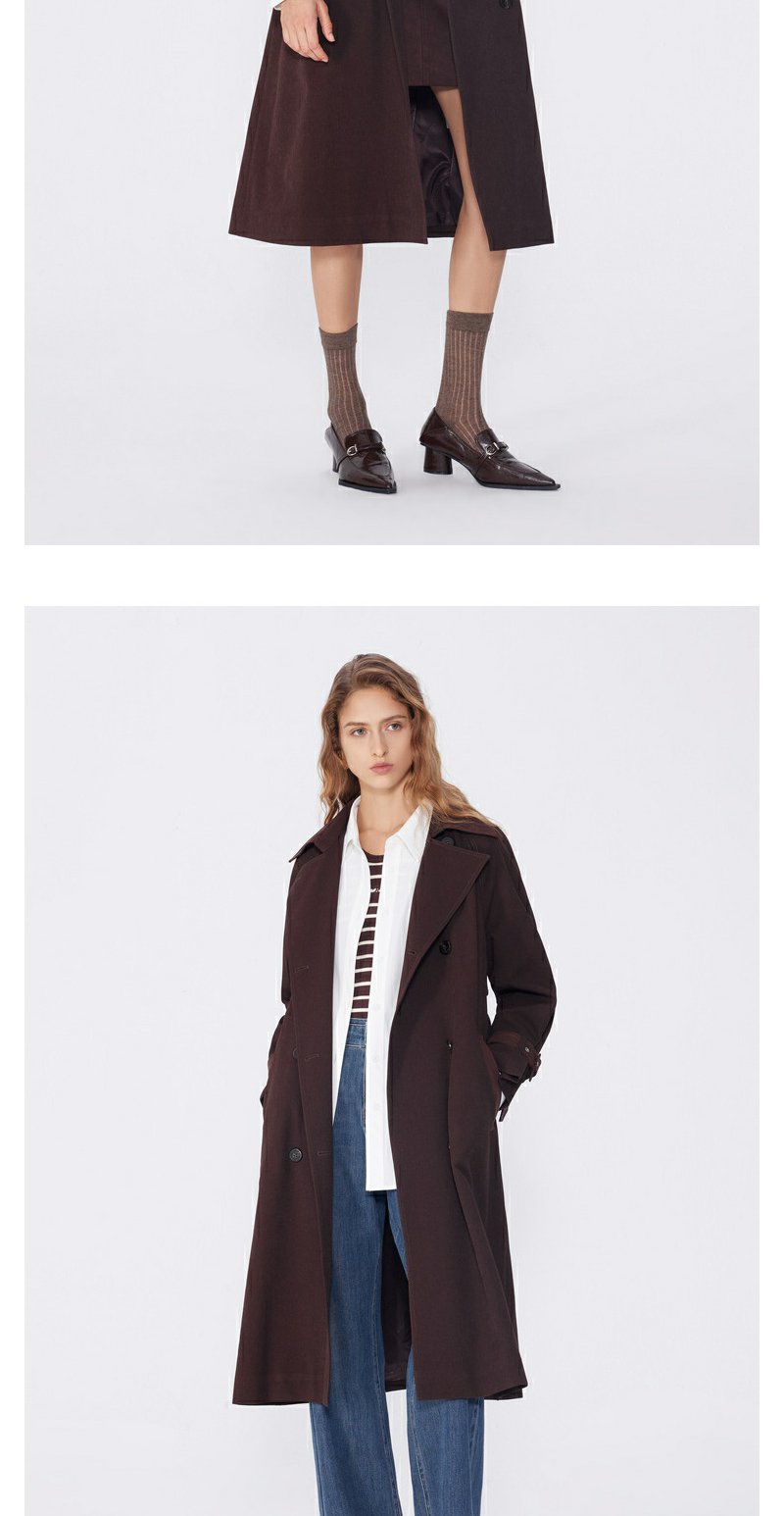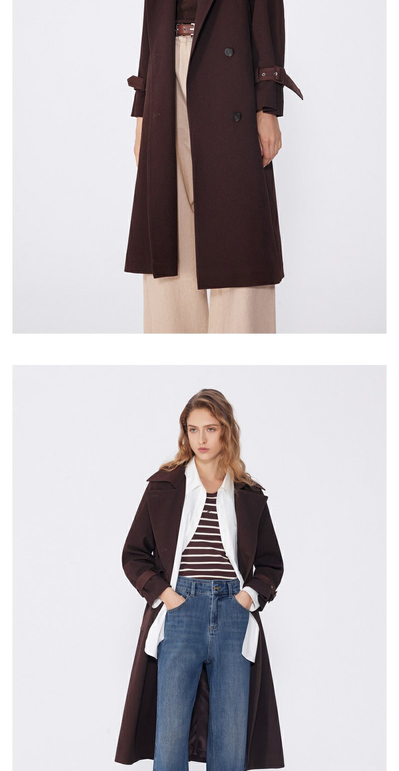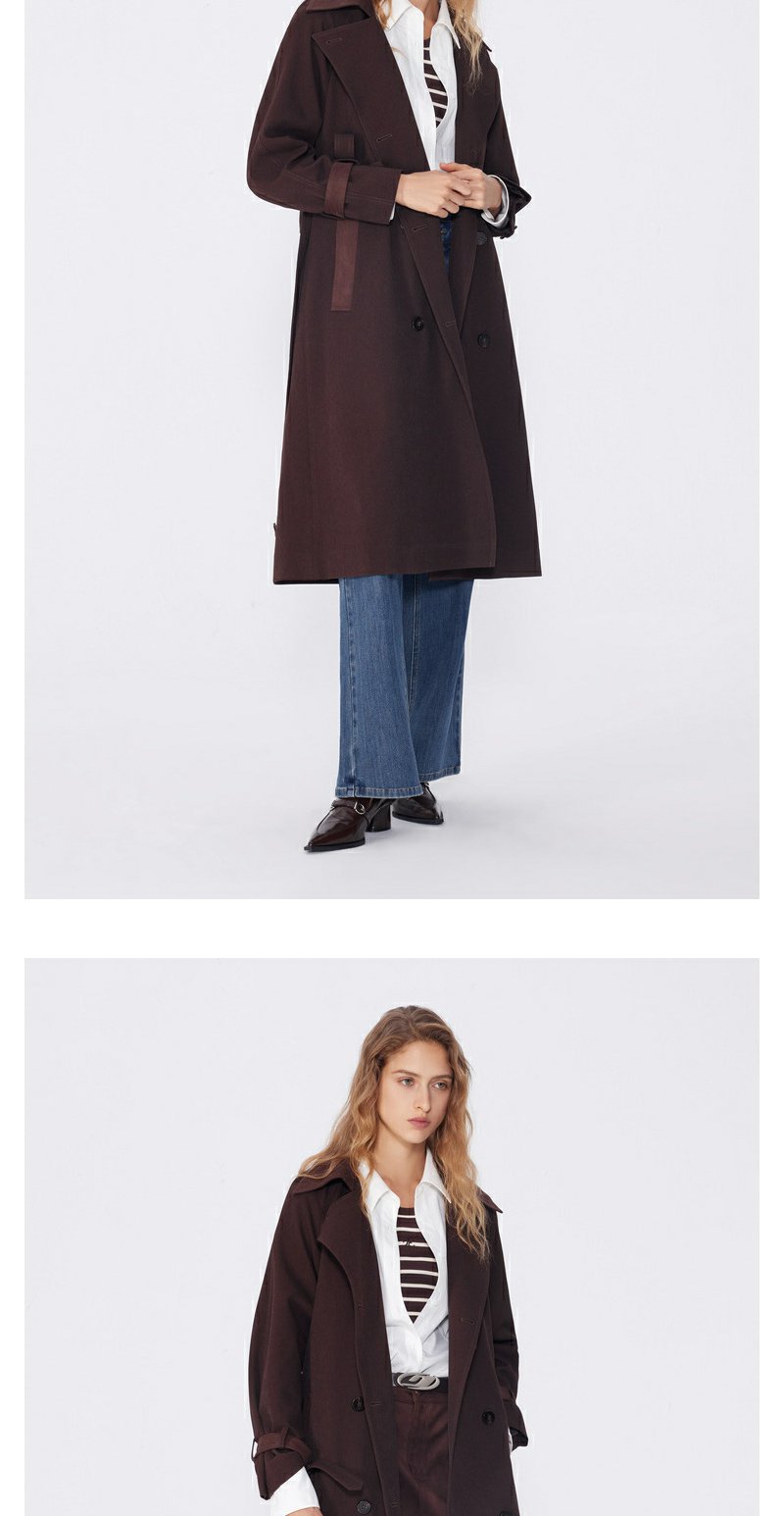 NEELLY纳俪秋季新款商场同款美拉德宽松双排扣风衣女复古长外套N25094F04618