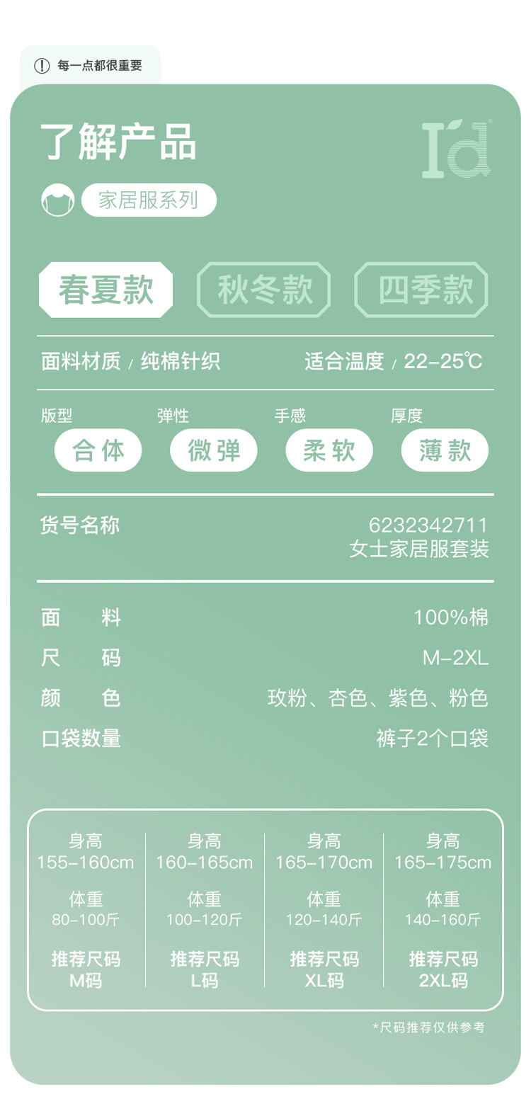 【断码特价】I'd爱帝女士纯棉短袖长裤家居服