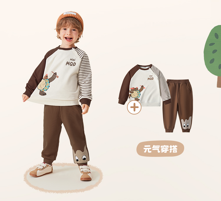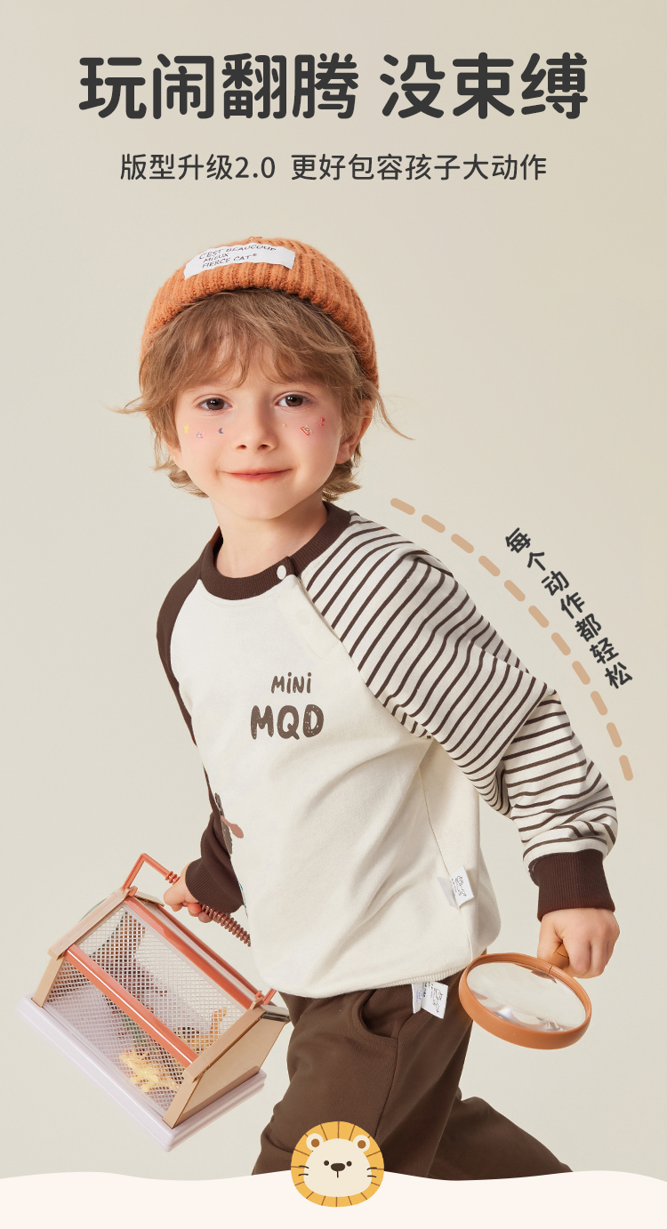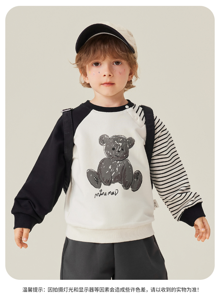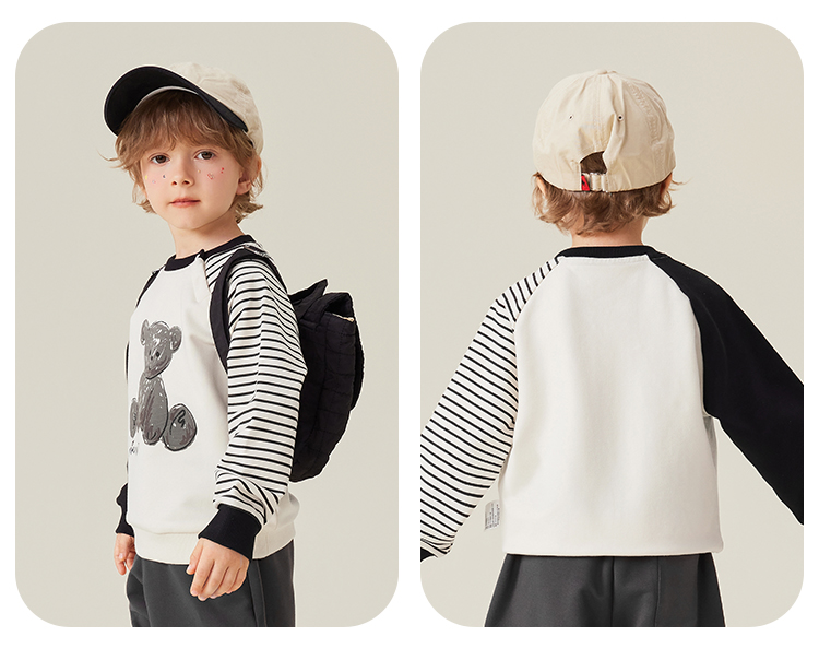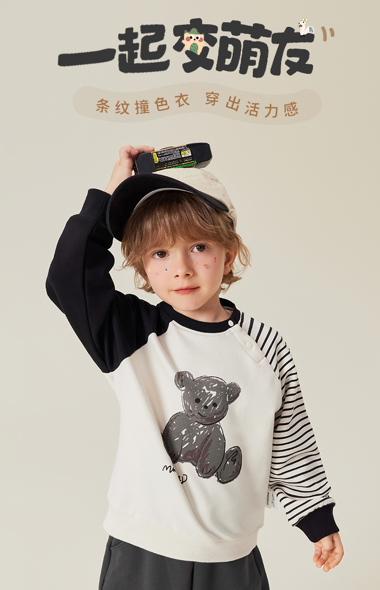 【5A抑菌】【80-140】【MQDmini】男童春秋条纹撞色AB袖卫衣