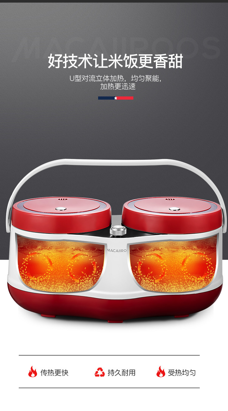 【迈卡罗】Macaiiroos/迈卡罗双胆电饭锅4升智能多功能电饭煲家用大容量MC5065