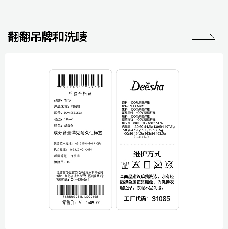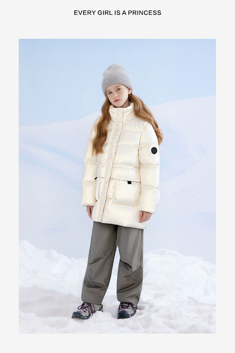 笛莎Deesha 童装女童羽绒服2025冬新款女童时尚甜美收腰中长款羽绒服