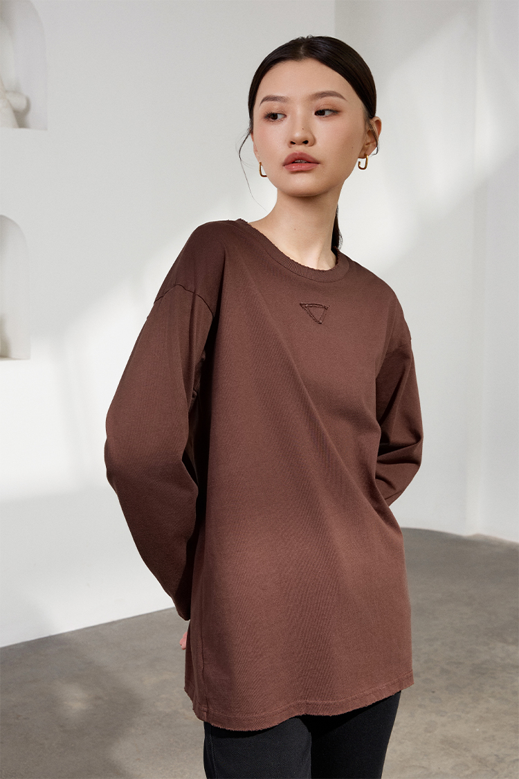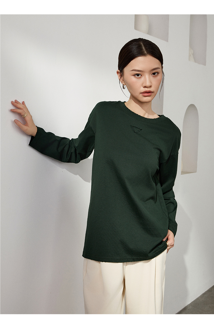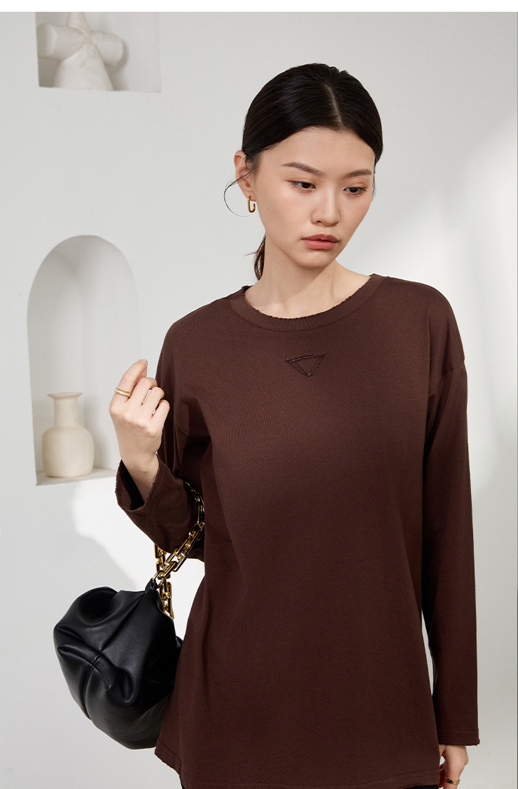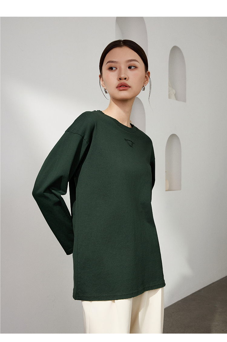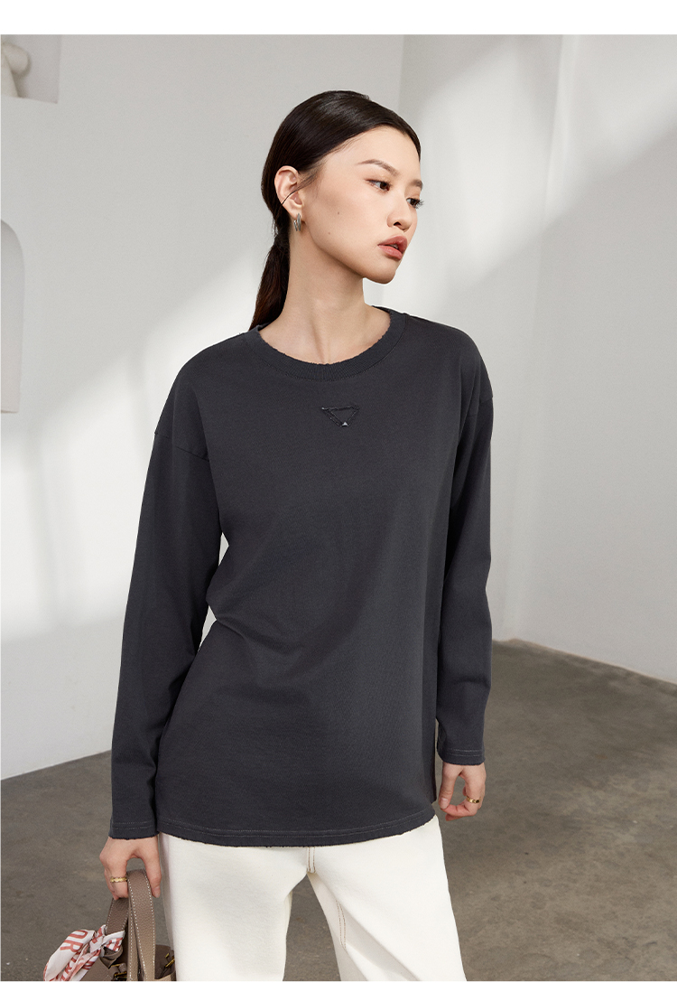 LILYMOON 水洗棉手工磨破长袖T恤男女同款情侣打底衫新疆长绒棉