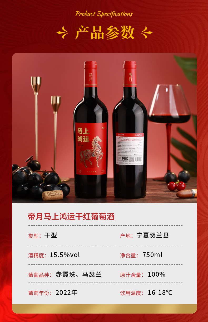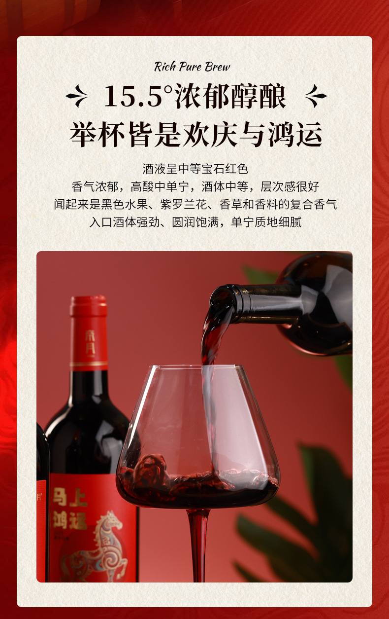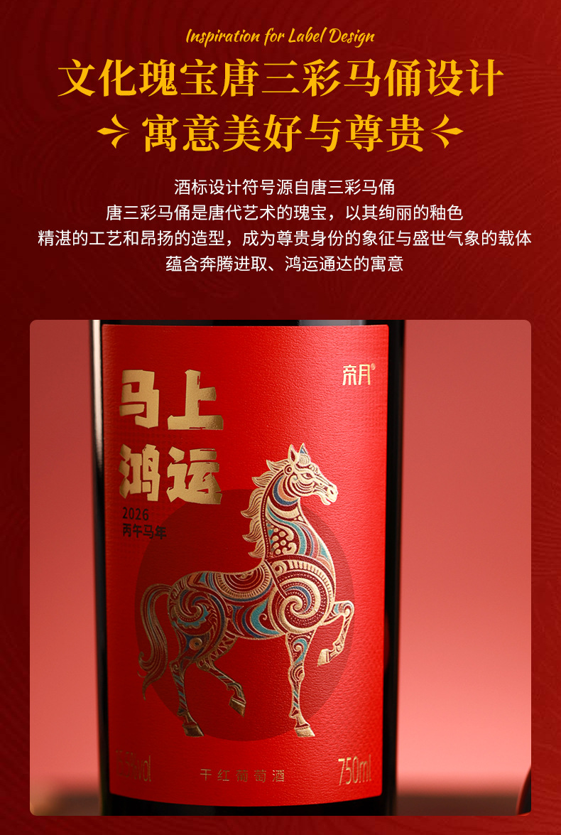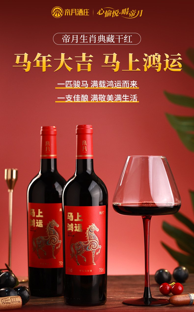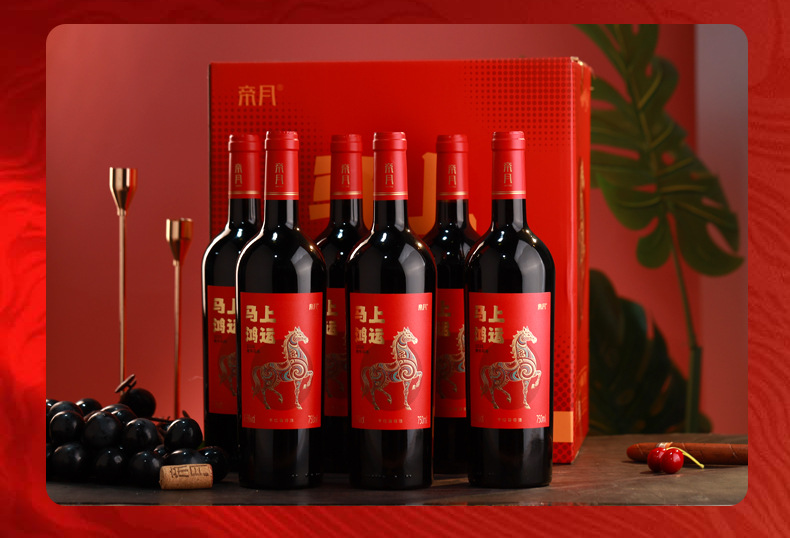 【”马上鸿运“红酒750ml】马年春节元旦礼品 宁夏贺兰山干红葡萄酒