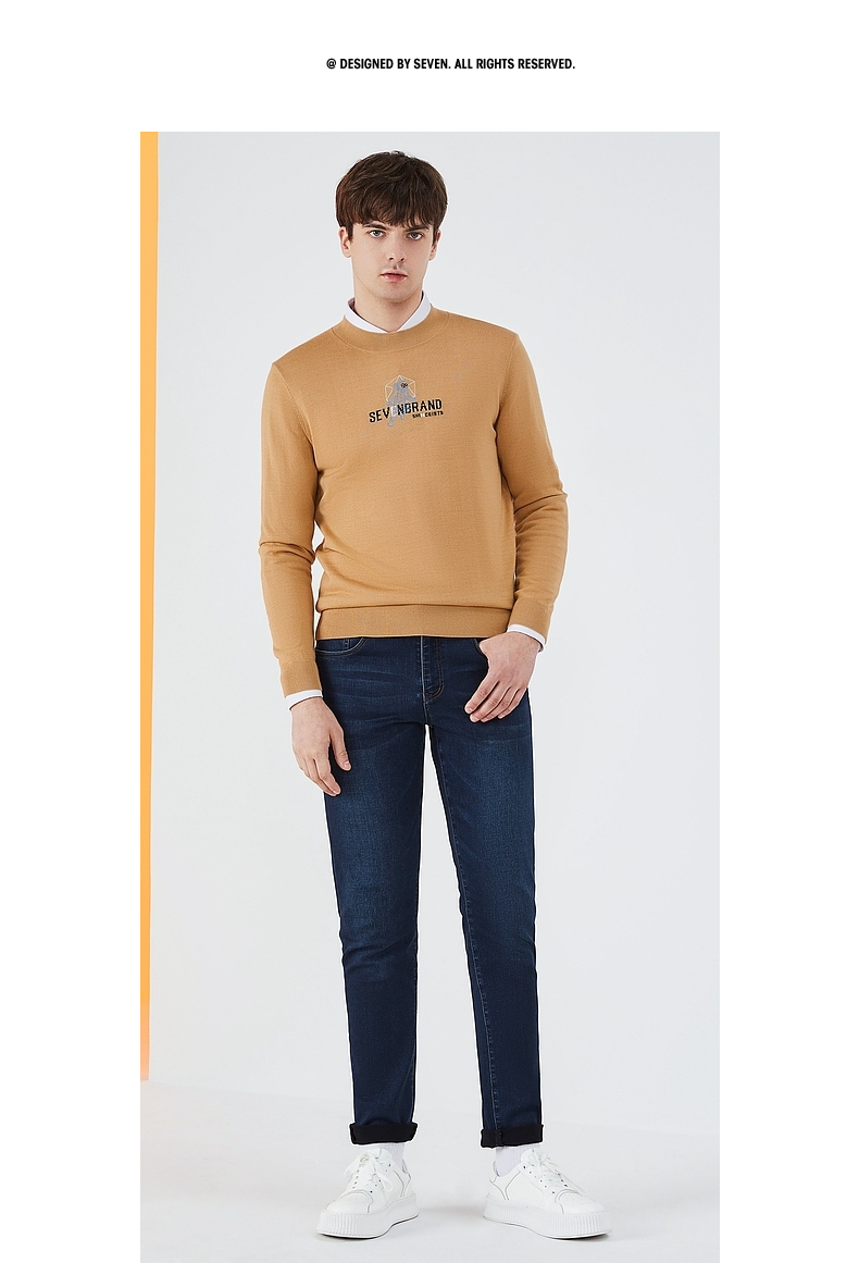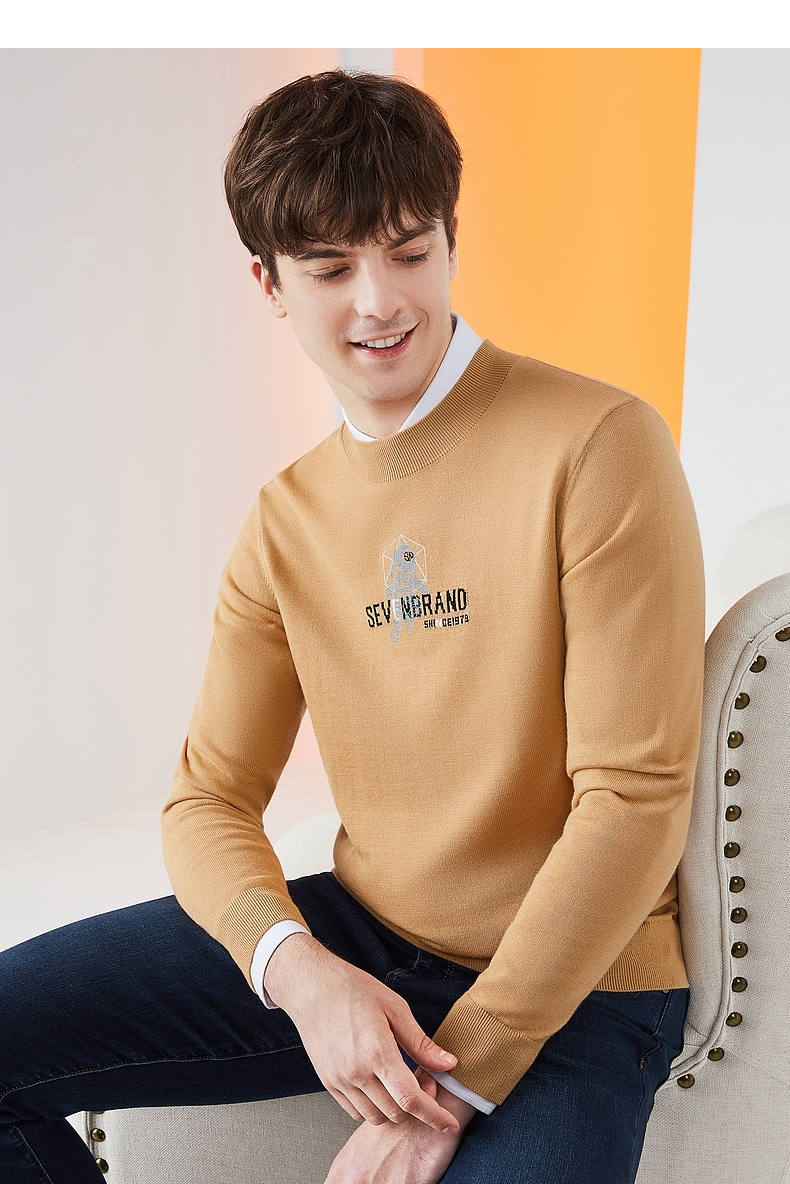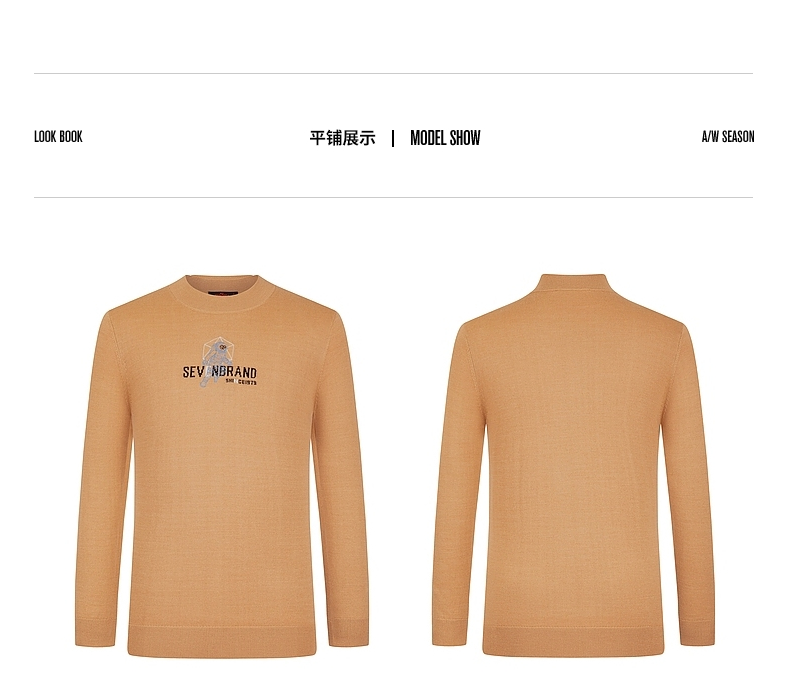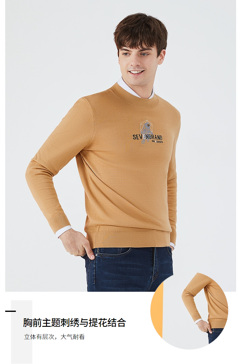 【限时秒杀】柒牌男士毛衣秋冬薄款可机洗毛衫时尚休闲半高领保暖上衣123Y70350