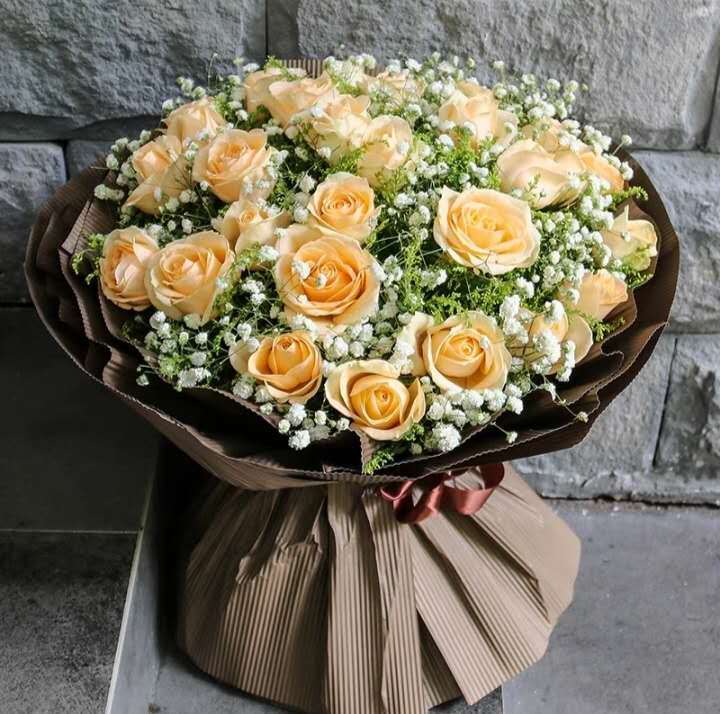 由于鲜花包扎各地的花艺师不同,可能在形式和搭配上与图片不完全一致,但保证主花材的新鲜程度、数量、颜色与说明一致,谢谢。