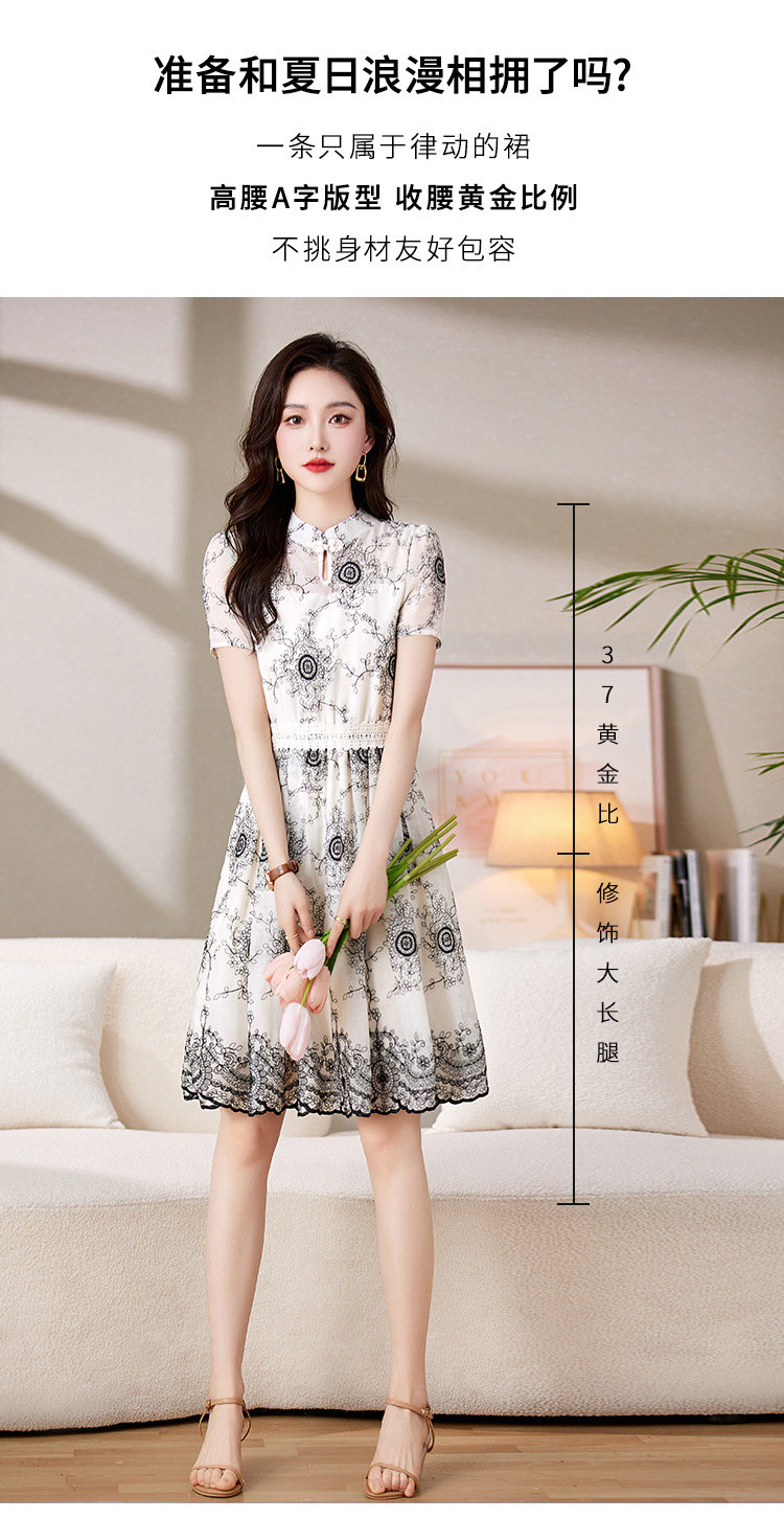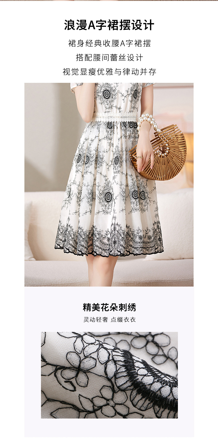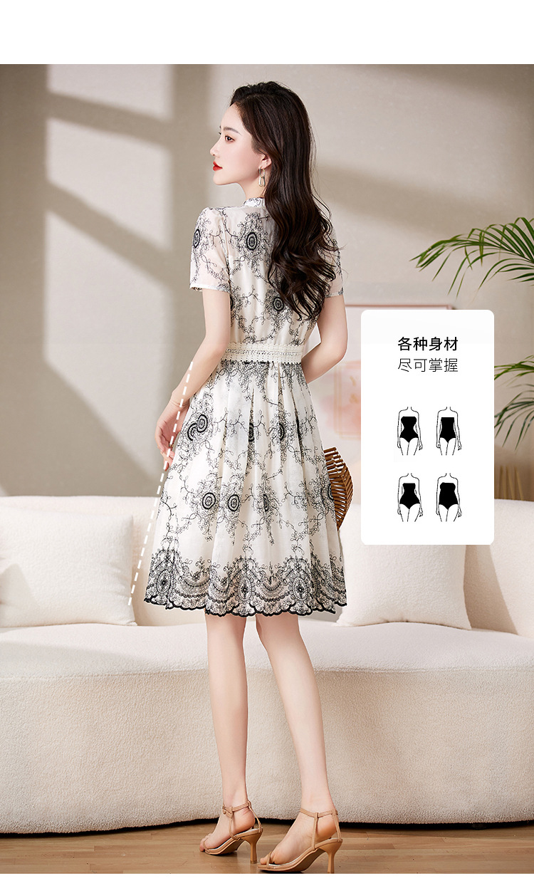 可爱优雅,圆领通勤中腰套头短袖中长款百搭夏季连衣裙HR-JXYR8303