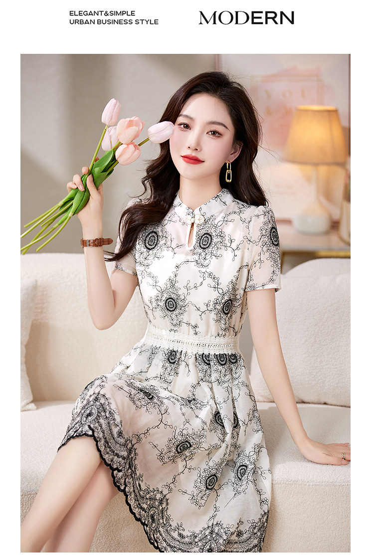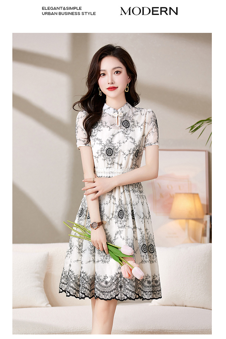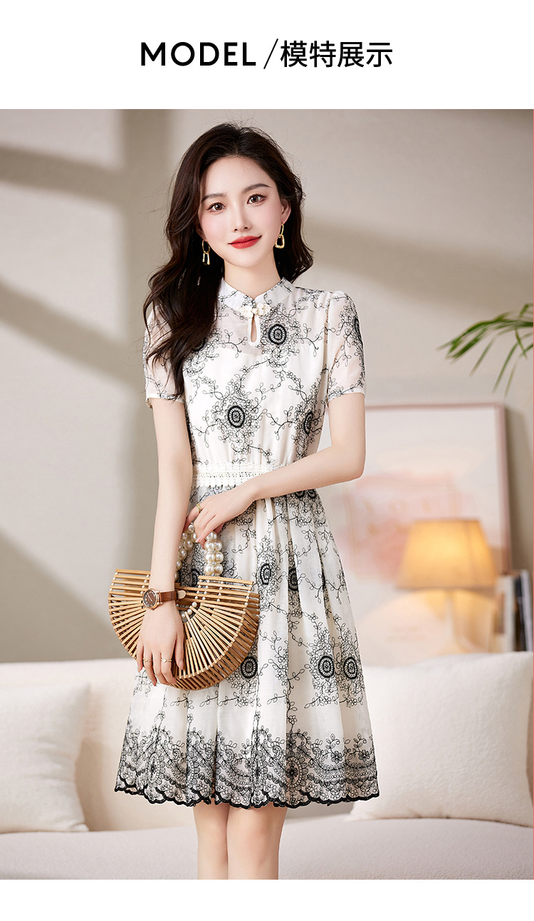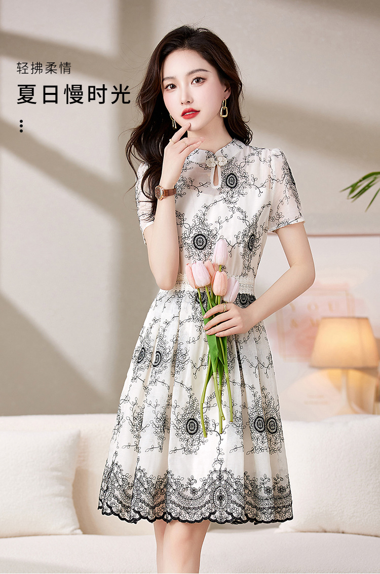 可爱优雅,圆领通勤中腰套头短袖中长款百搭夏季连衣裙HR-JXYR8303